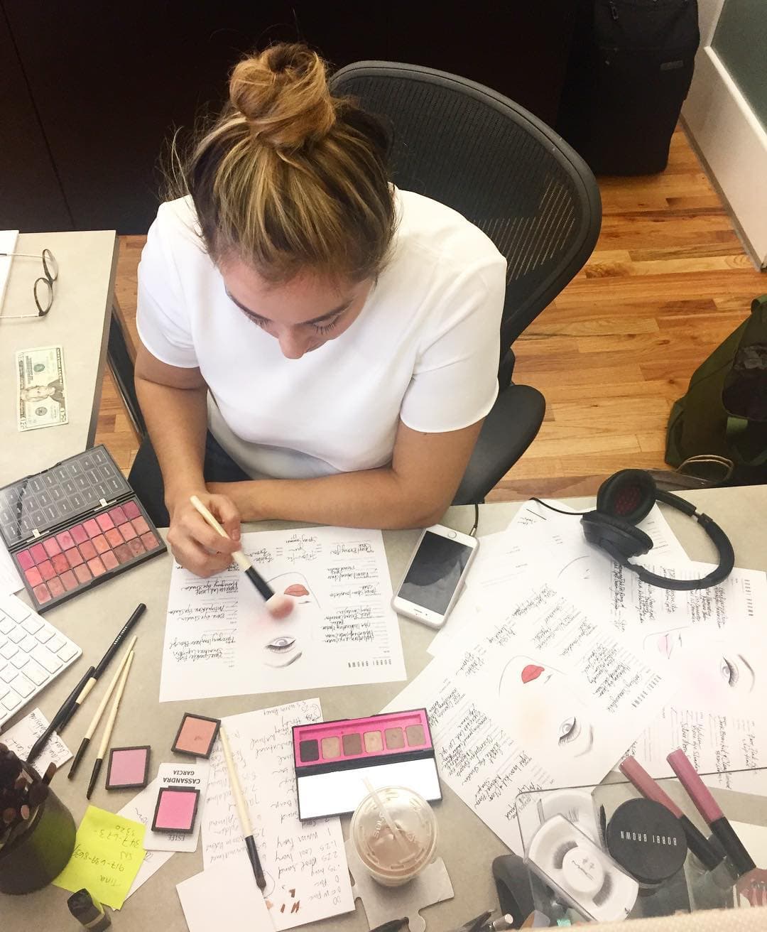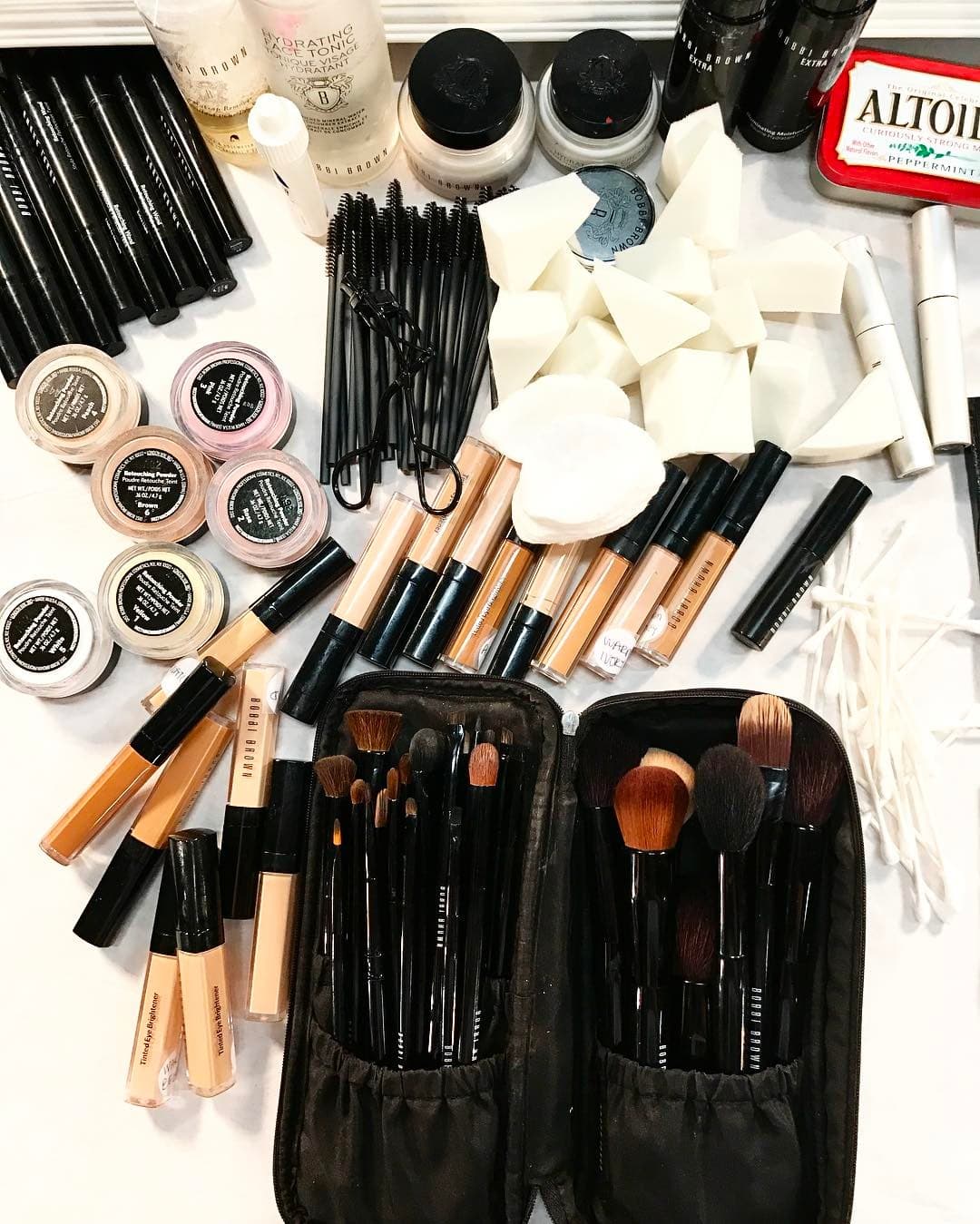 “EVERYTHING. It weighs about 60 pounds and has every piece of Bobbi Brown makeup, from vintage to new, and some sprinkles of Armani, Pat McGrath labs, Chanel, Nars, Tom Ford, La Mer. Yeah, it’s excessive.”