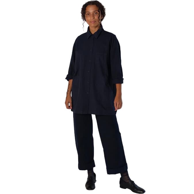 collection, and she has some pieces that are perfect for my fall/winter uniform. Oversize menswear-type button-down shirts with great cropped wide-leg pants, cute socks, and some flats. I love a uniform!”