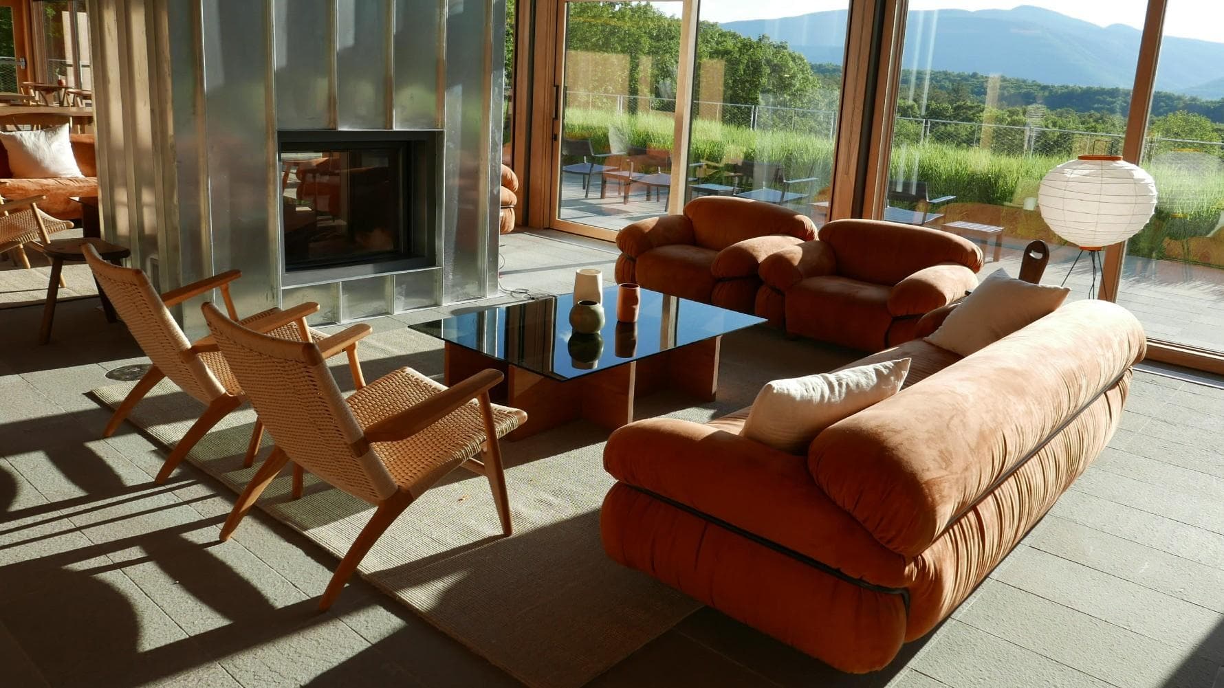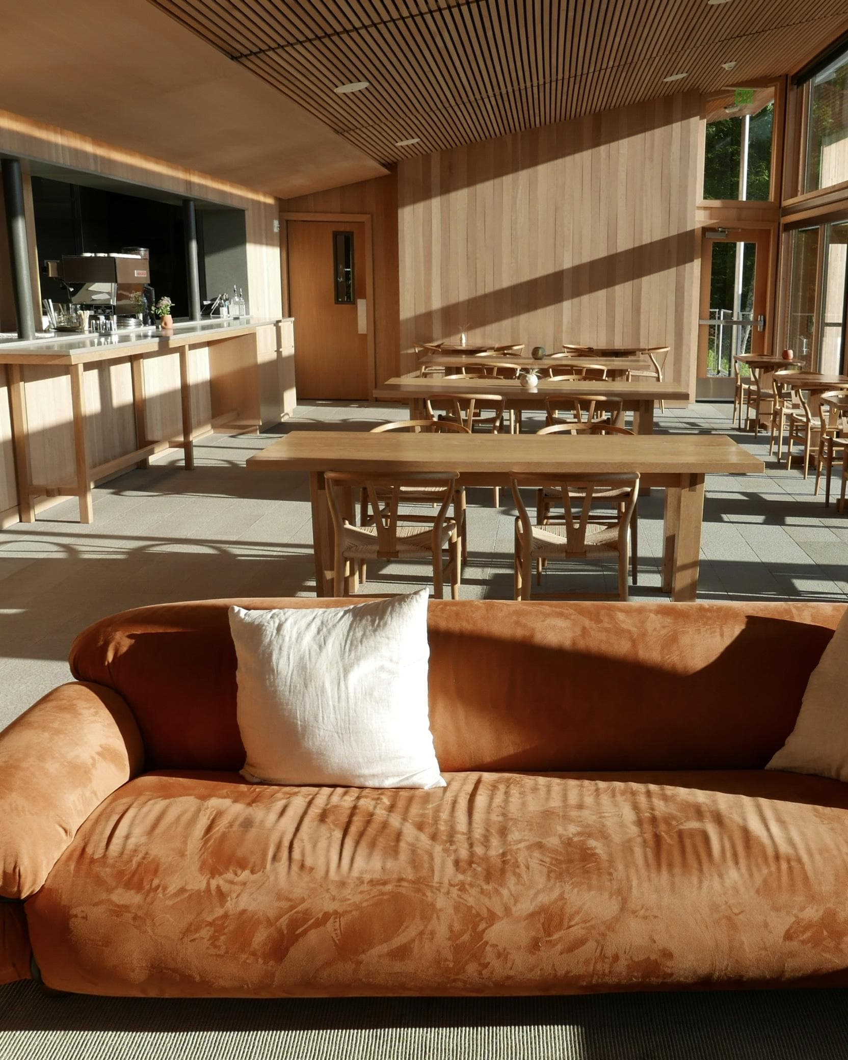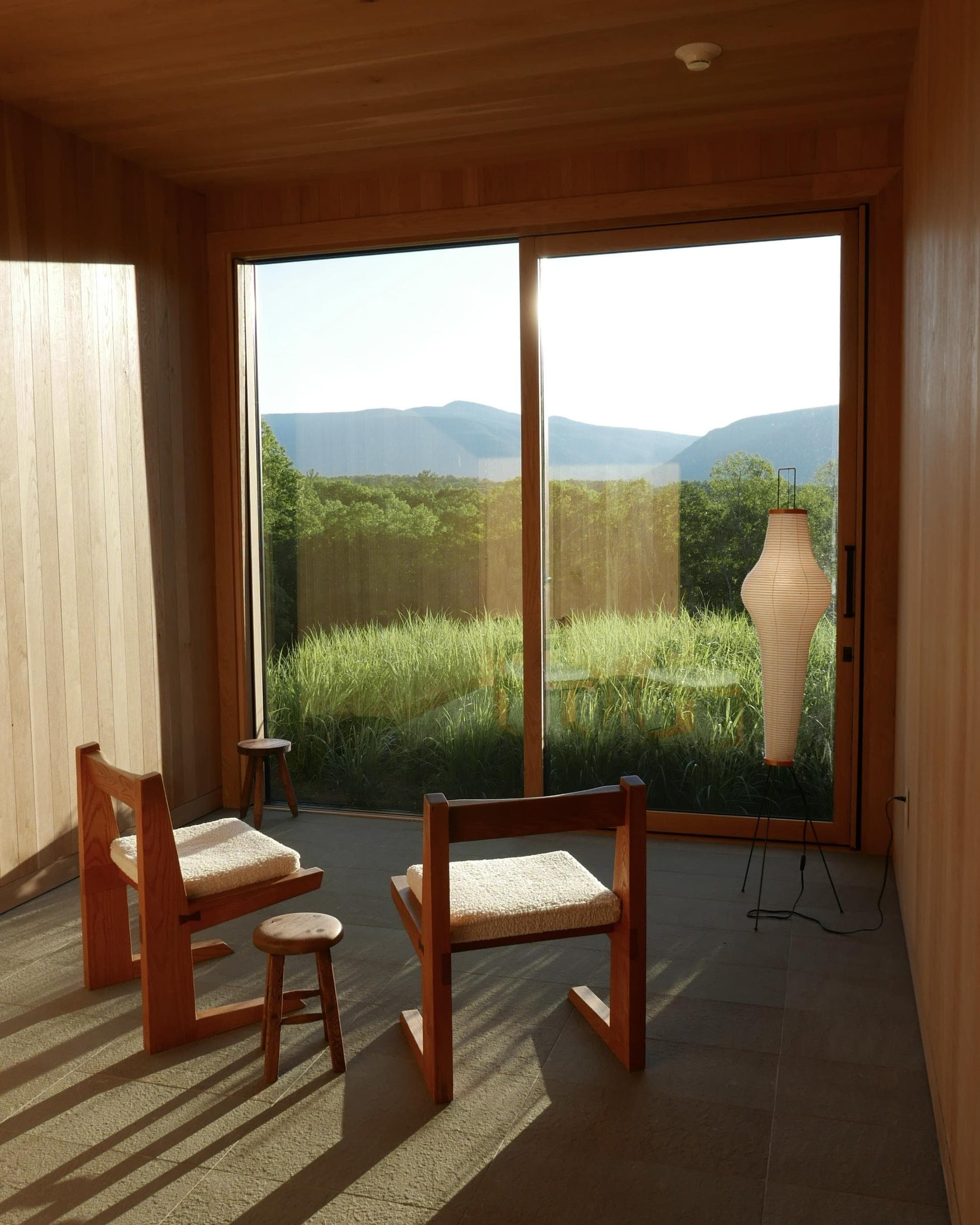 A sitting room inside the spa, overlooking the hotel propertyThere’s no doubt about it — Piaule is an aesthete’s dream. The landscape hotel with over twenty private ‘cabins’ offers a perfect escape from the hustle and bustle of New York. Each room has one wall made of glass, offering a glimpse into nature at every hour of the day. Piaule is the brain child of Nolan McHugh and Trevor Briggs, a NYC-based creative duo (also behind the homeware brand of the same name). The main lodge is one of the most Instagrammable interiors I’ve seen to date, with pieces made specially for the hotel. Don’t skip the spa, with an infinity pool overlooking the landscape and sitting rooms so serene you’ll feel recharged in no time.