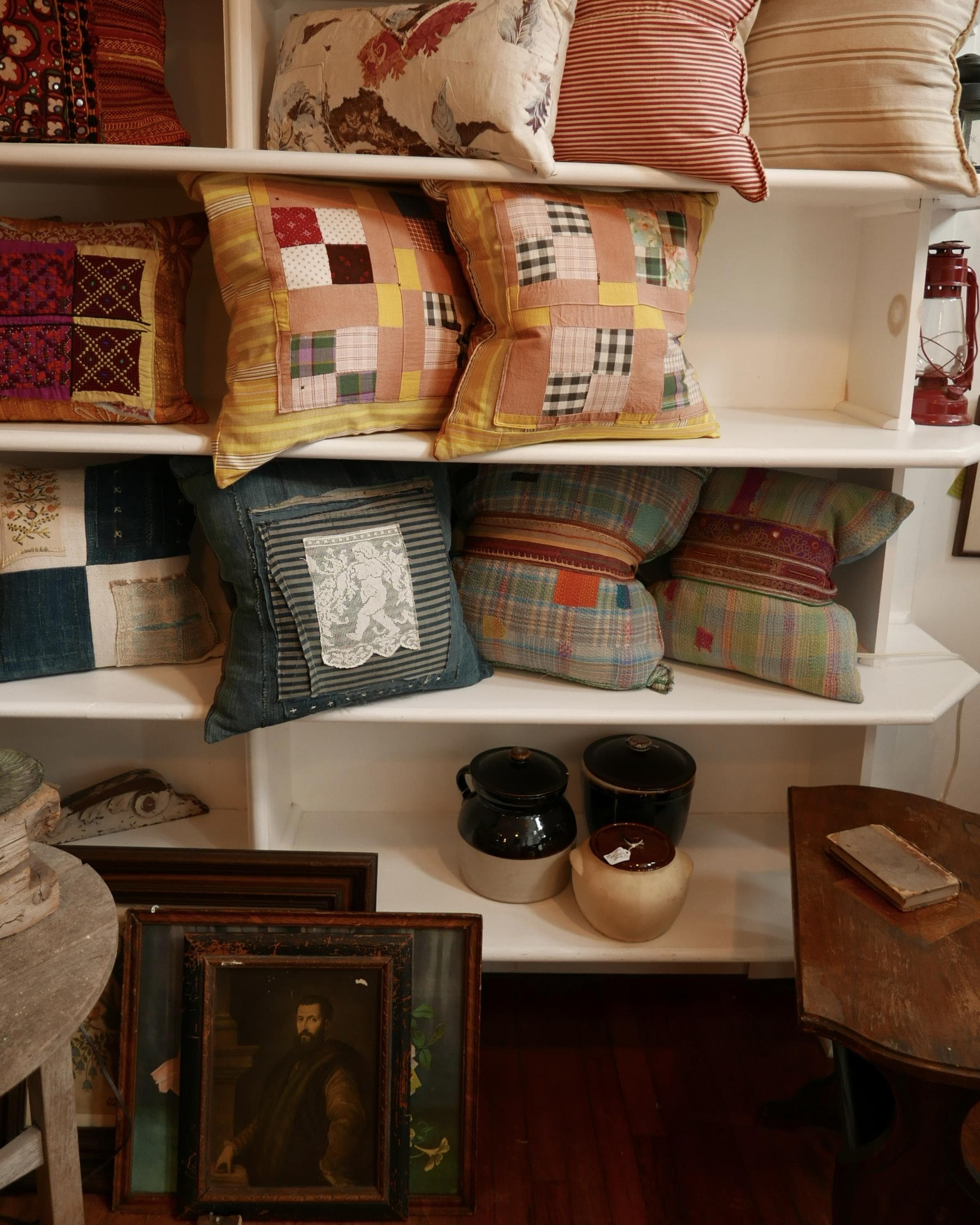 A few of the throw pillows for sale, each unique and made from recycled textiles and fabricsI almost walked right by Corduroy Shop and am so glad I didn’t. Shop owner Chrisie Cordrey has made it her mission to salvage textiles from ending up in landfills. Stop inside to see some of the most beautiful fabrics she’s picked up from around the world, whether from a vintage flea or a garage sale next door. The shop specializes in recycling these textiles into pillows, throws, and they even upholster furniture. If you have a piece that’s in need of some TLC, bring it to the Corduroy Shop to be patched up with some of the chicest fabrics you’ll find out there (and they’ll come home with quite the eclectic flair).