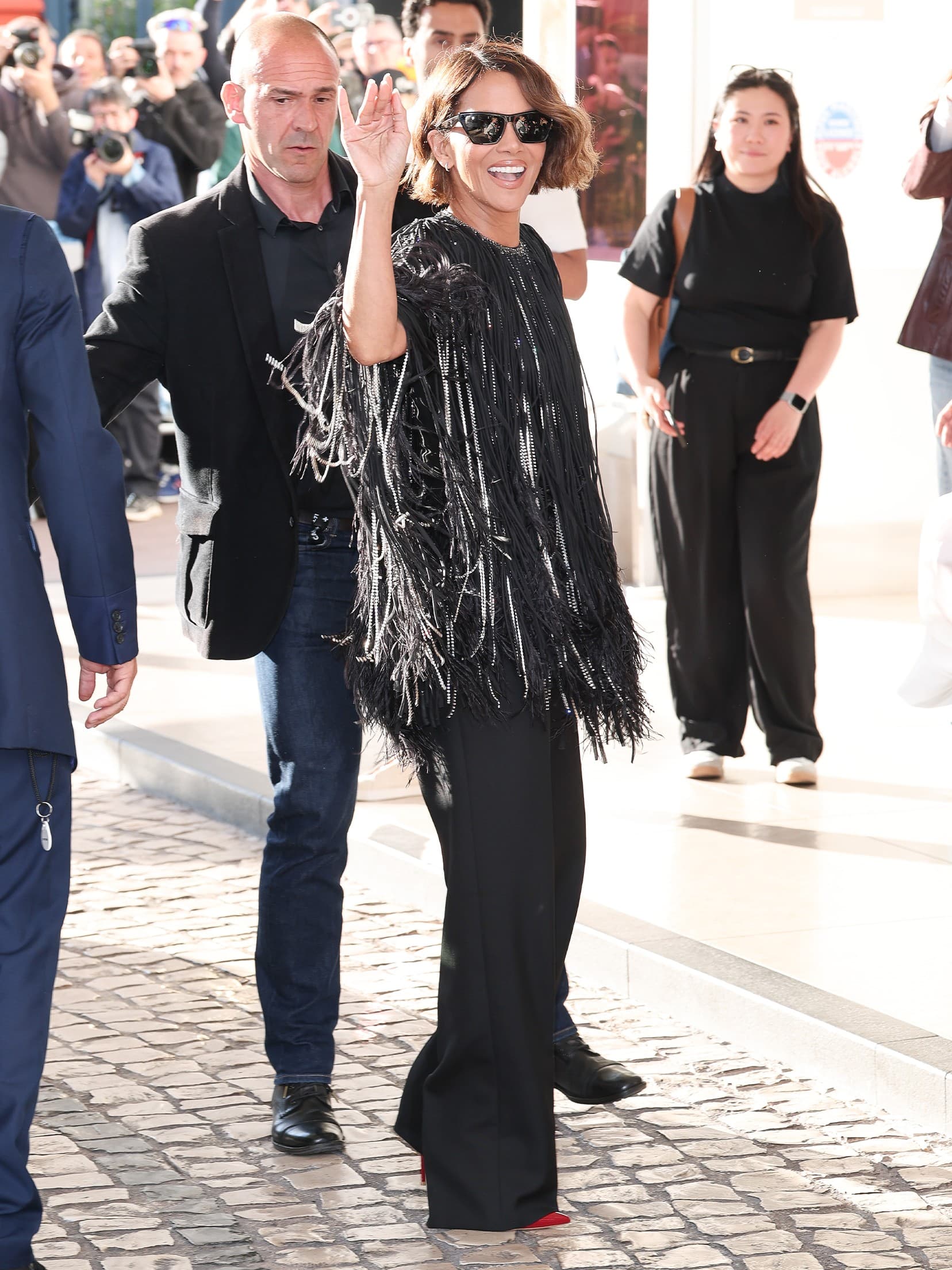 Jacopo Raule / Getty ImagesHalle Berry arrives in a Alexandre Vauthier Spring 2025 Couture top,wide-leg trousers and red pumps for a bit of color.