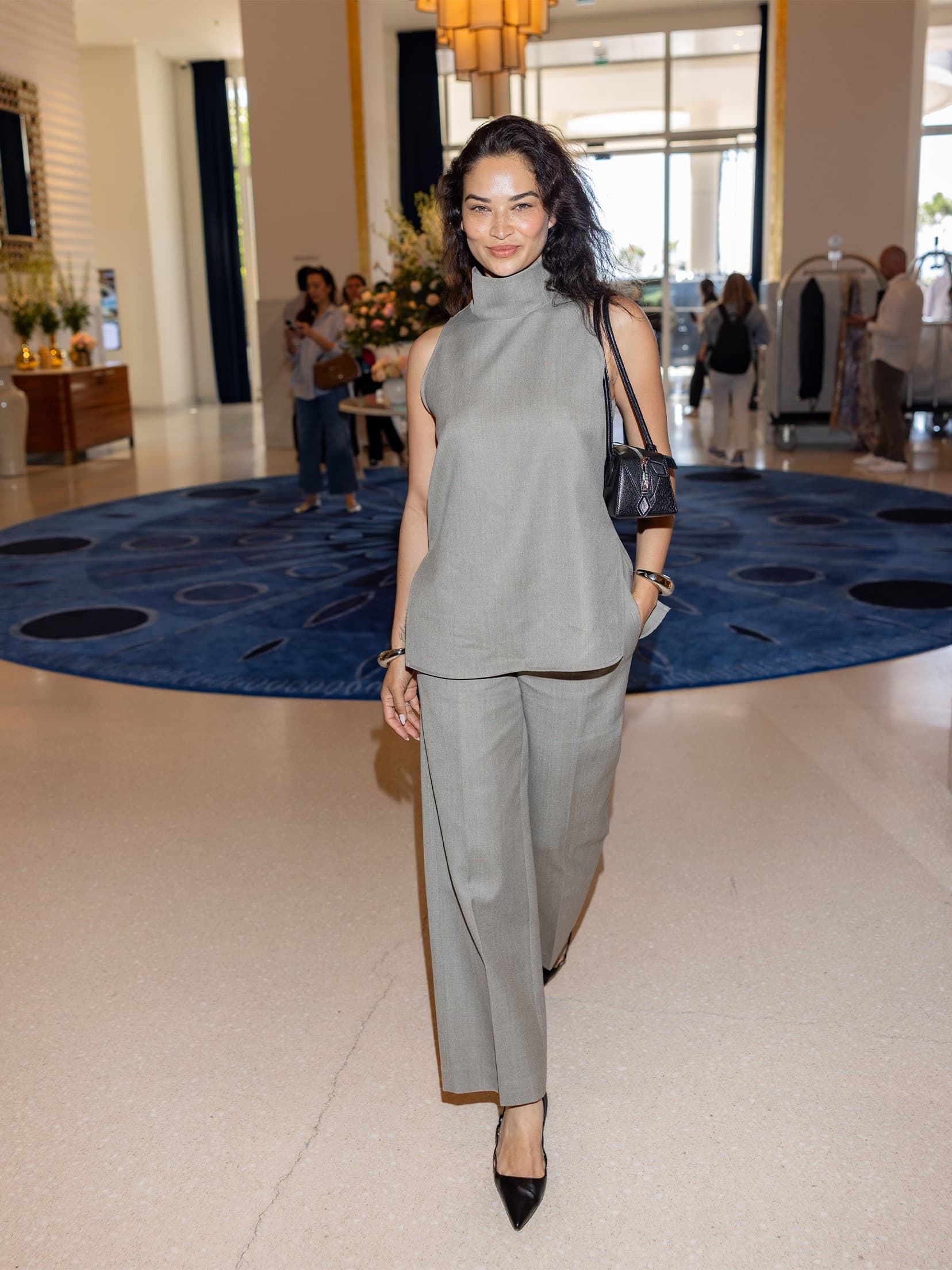 Arnold Jerocki / Getty ImagesShanina Shaik arrives on opening day at Cannes in a sleek, monochromatic matching set, black Alaïa Le Teckel bag and black pointy pumps.
