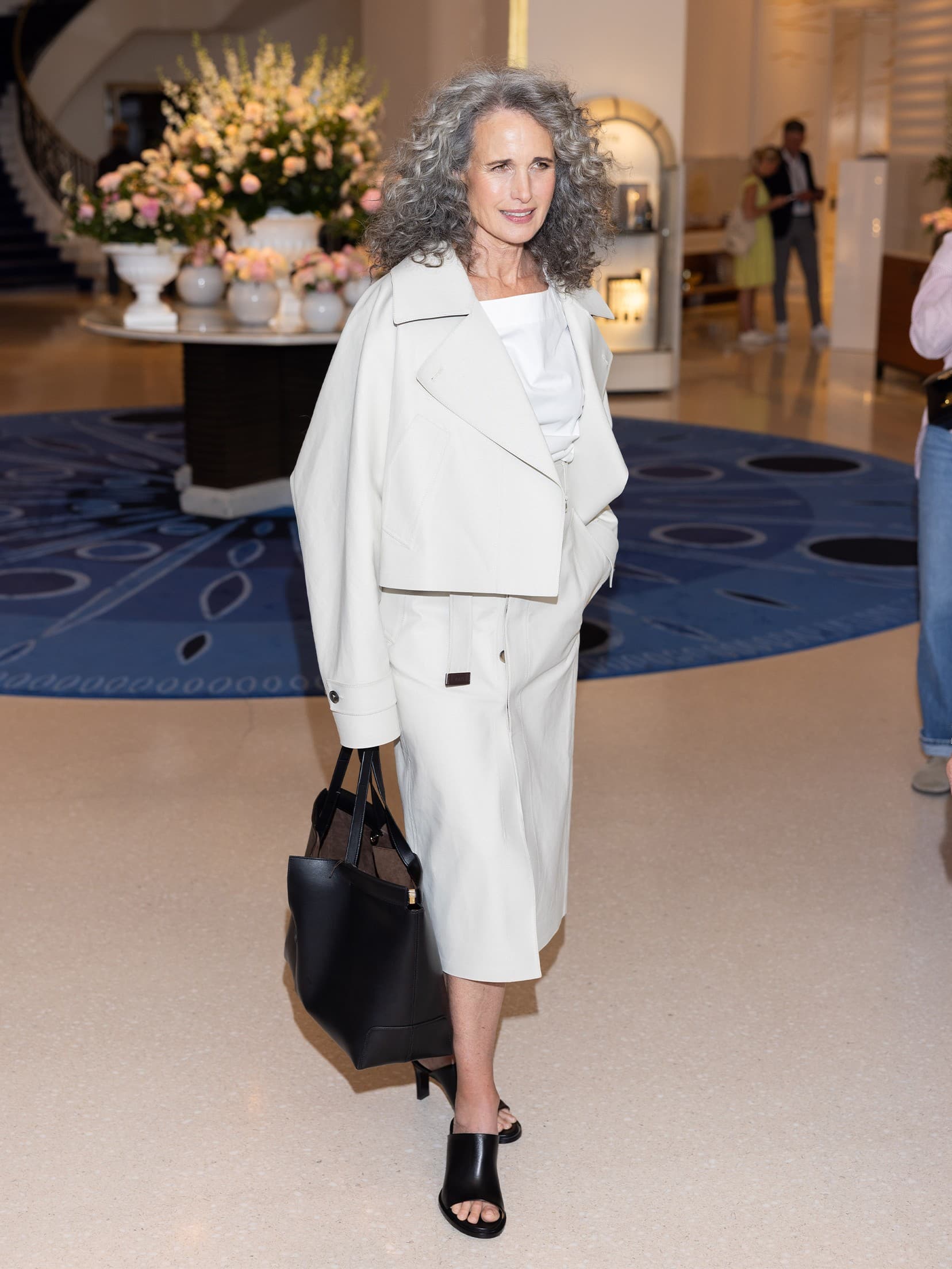 Arnold Jerocki / Getty ImagesActress Andie MacDowell arrived in a cropped trench coat and matching skirt from Tod's Spring/Summer 2025 collection.