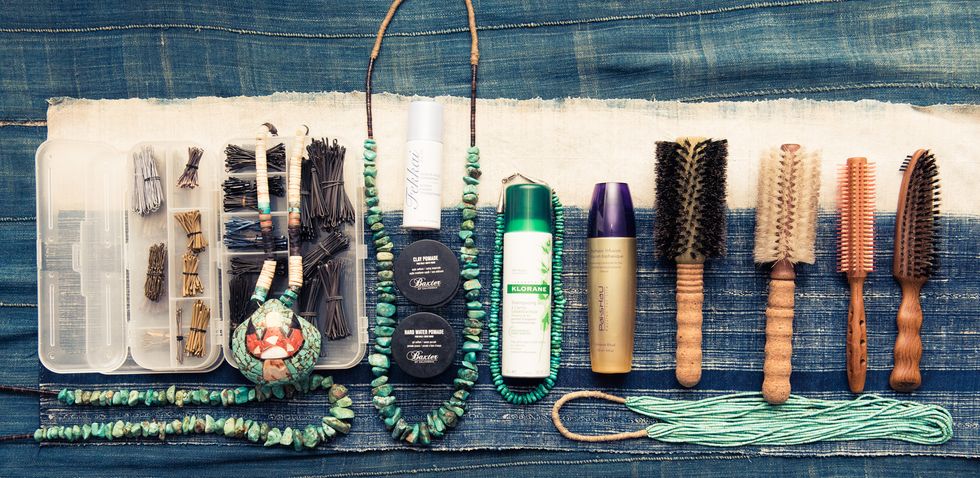 “I can’t live without a volumizer. I use Kusco Murphy setting lotion all the time, Maximista by Oribe and Bumble & bumble Mousse. For a great blowout, I use this Leonor Greyl mousse I really love. For hairspray, I love everything from Frederic Fekkai Sheer Hold Hairspray to the Oribe Superfine Hairspray. I love all of the beautiful oils, from marula oil to Rodin oil.”