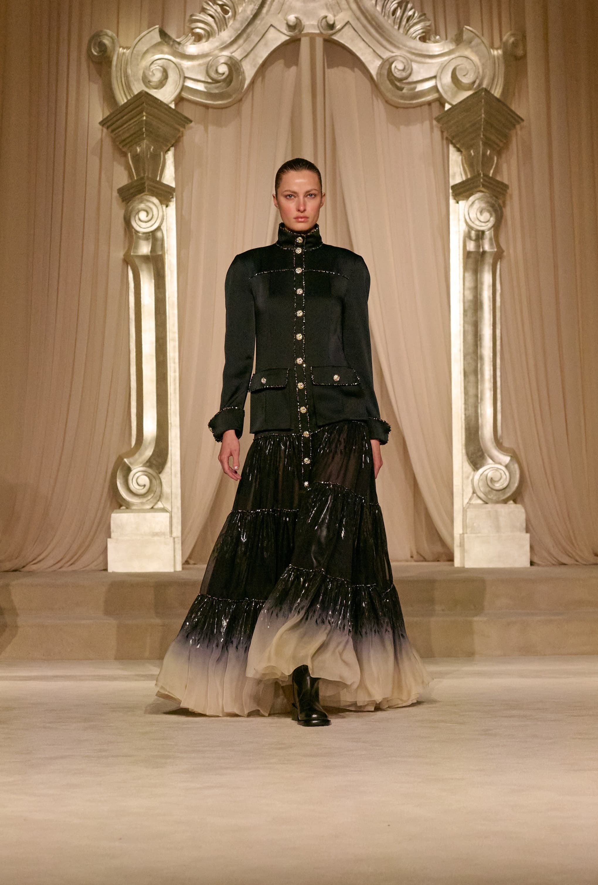 We are in an interim phase at Chanel. Matthieu Blazy—who is tipped to succeed Virginie Viard this September—has had a long run up to the podium since the news broke that he would be taking the helm of the house as artistic director, and so today’s Chanel Fall 2026 Haute Couture collection was produced by the in-house atelier.