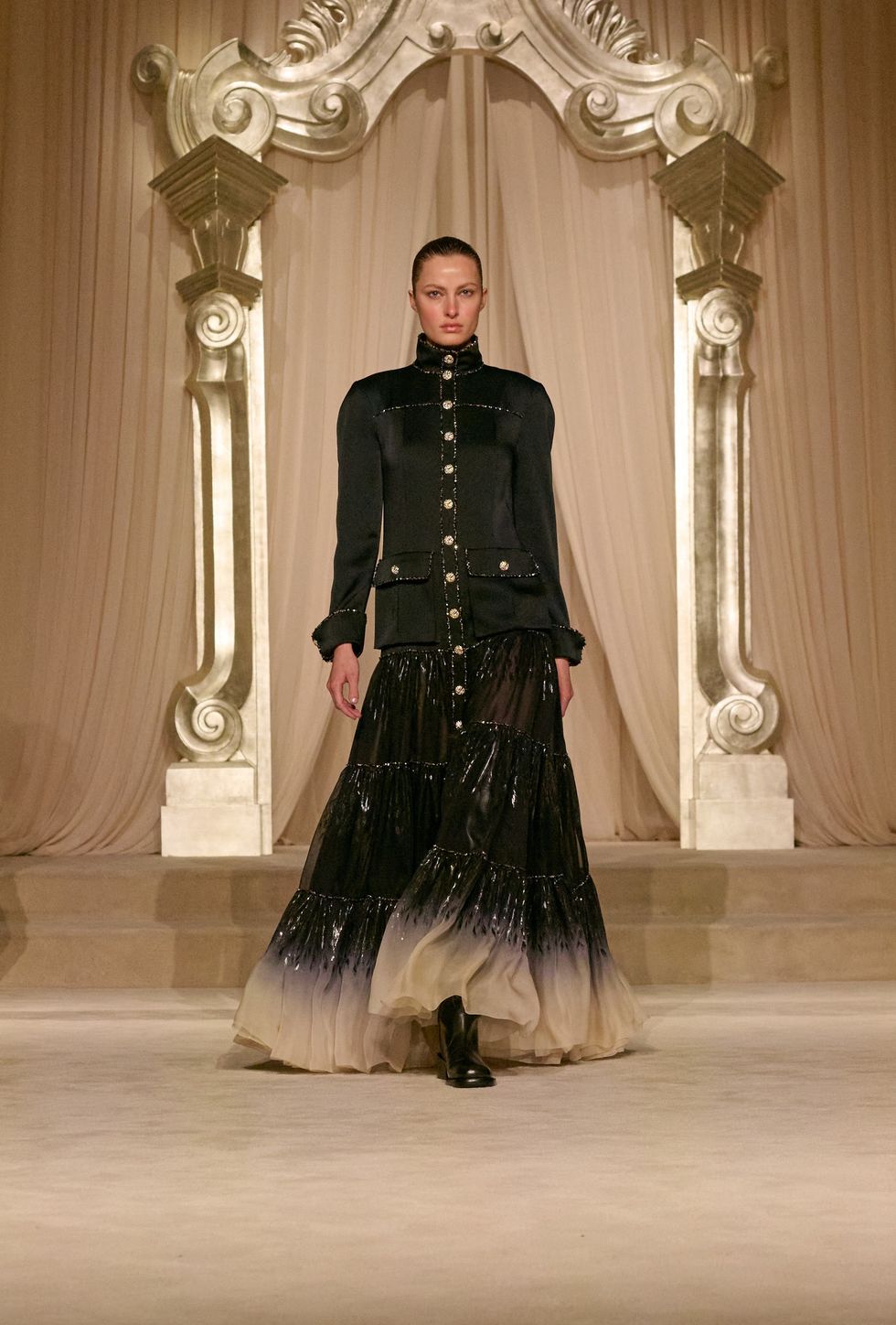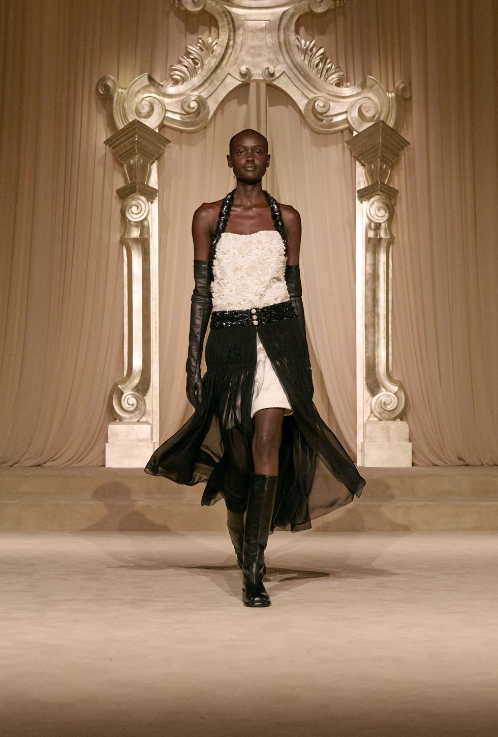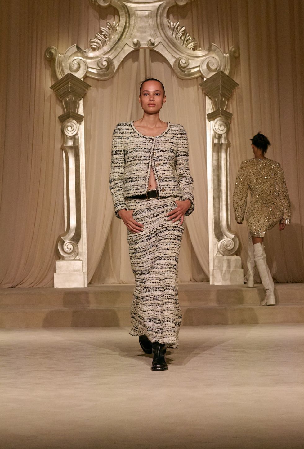 The show space was notable here, setting the tone for the intention of the house as it navigates collections without a creative director. Inside the Grand Palais, set designer Willo Perron created a salon environment, evocative of the couture rooms at Rue Cambon for Chanel’s most important clients. What lacked in specificity around a theme, the atelier made up for in savoir-faire—as expected for a house whose couture arm is so integral to the brand’s identity.