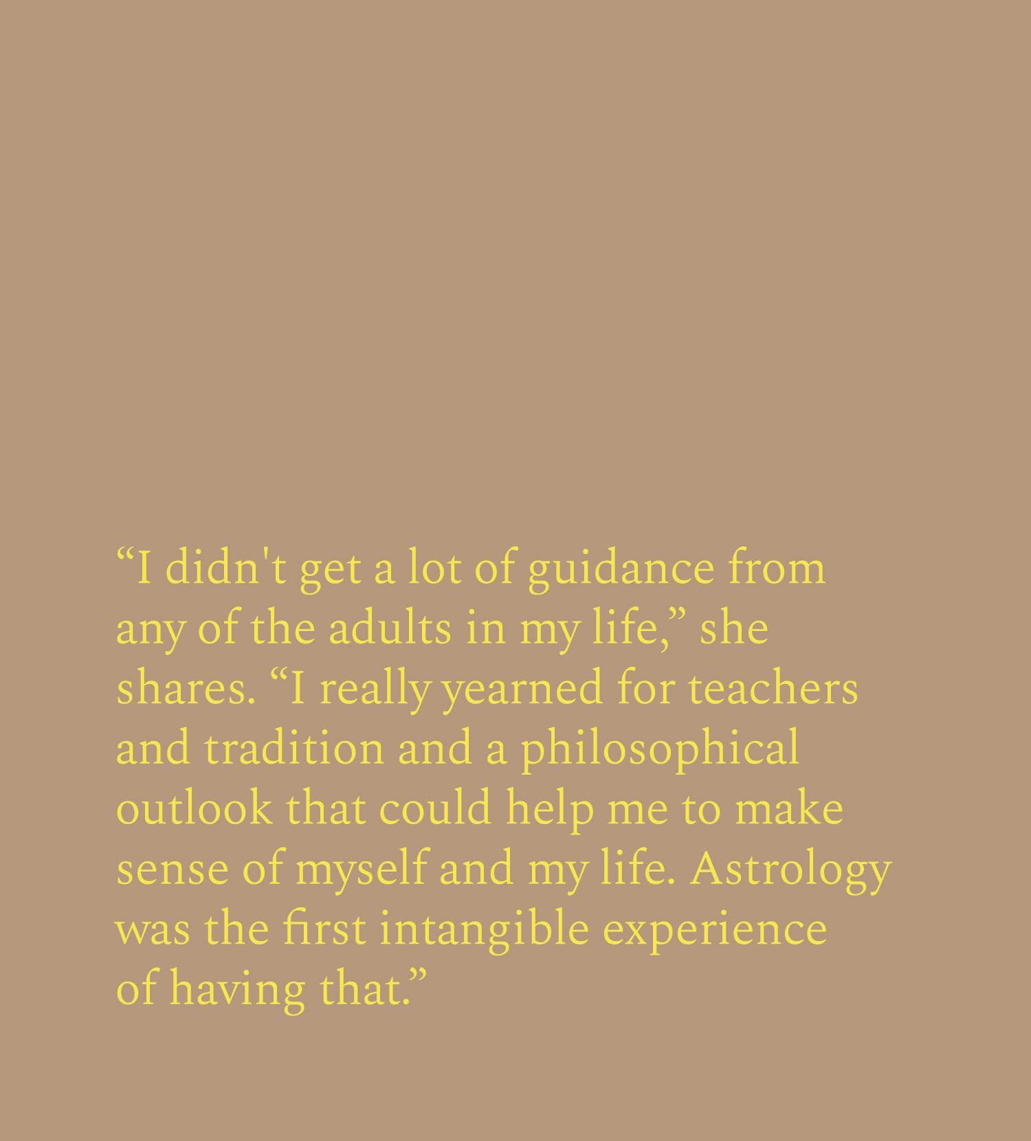 Canadian-born Nicholas says she was a "seeker" as a child. At the age of 12, Nicholas's grandmother bought her family a reading and it opened her world. "I didn't get a lot of guidance from any of the adults in my life," she shares. "I really yearned for teachers and tradition and a philosophical outlook that could help me to make sense of myself and my life. Astrology was the first intangible experience of having that."