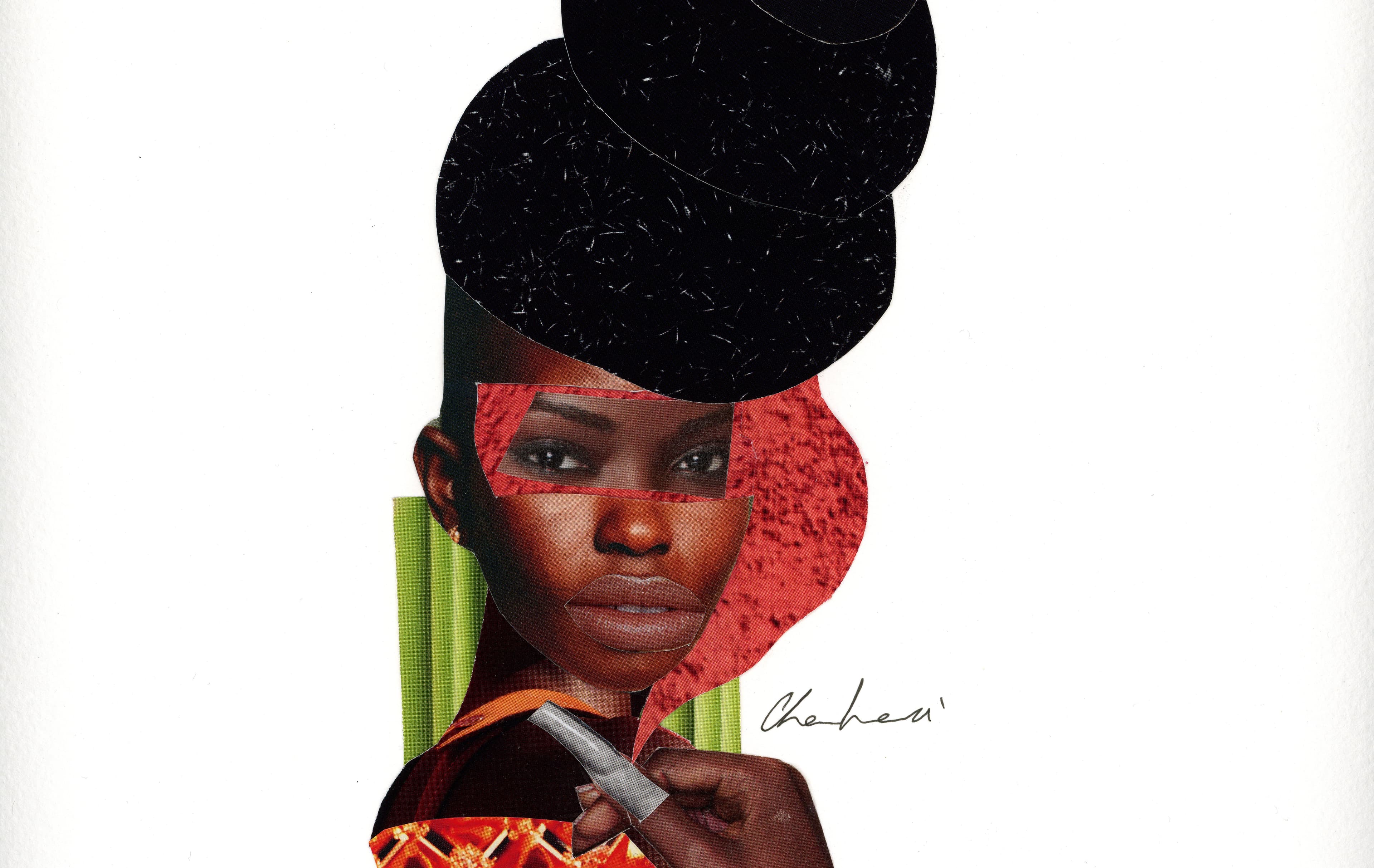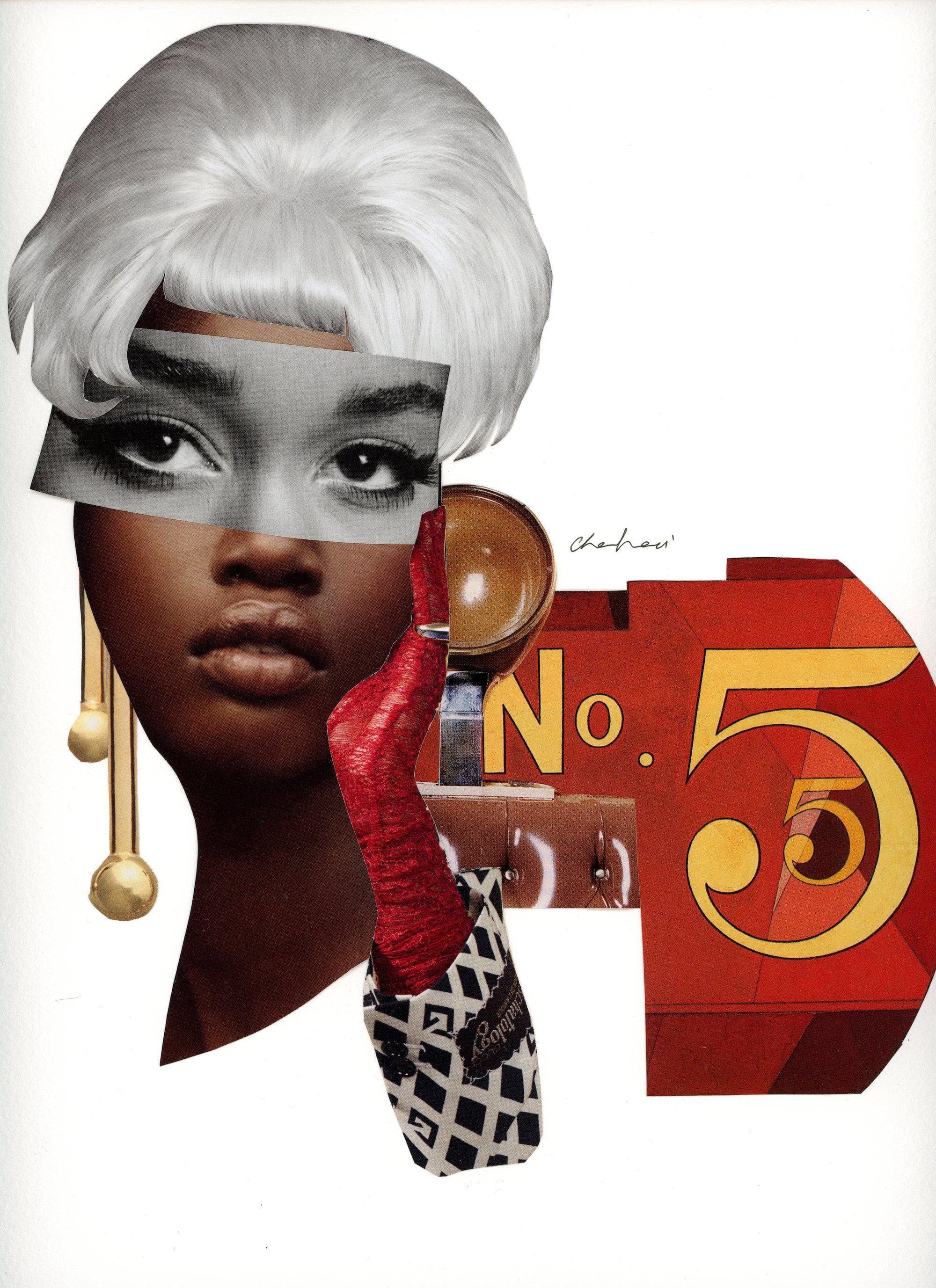 In the same spirit of artists like Mutu, Mickalene Thomas, and Lorna Simpson, Toronto-born, New York-based multimedia artist Chantel Walkes' collages are a celebration of Black beauty. Her creations have a striking active tense to them—animated expressions, hair cut into abstract bouffants, and the blending of past and present beauty trends. On Walkes' canvas, Black women are the complicated protagonists, untethered from the conventional representations of Afro-diasporic beauty and free to take center stage.