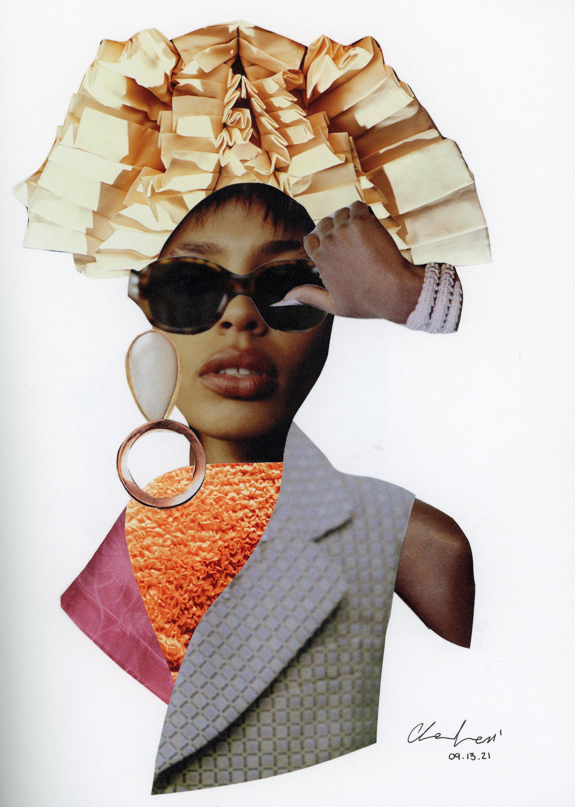 For Walkes, previous explorations with painting and photography didn't have such an emphasis on hair. "When I was painting, I never painted hair—I just did faces. When I started collaging, it felt like it was missing something, so the hair became the finishing piece for me. I'll assemble everything and when I pick the hair, it's a moment."
