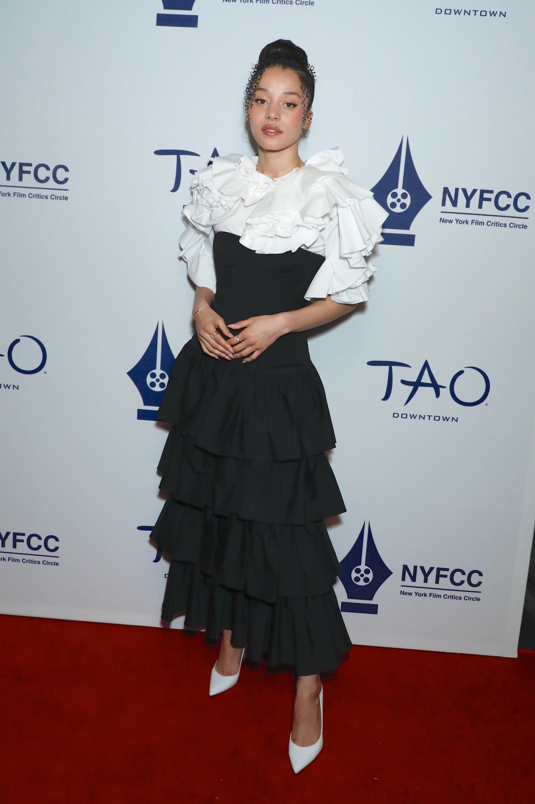 Gregory Pace/ShutterstockFor the New York Film Critics Circle Awards, Infiniti pulled a look from Carolina Herrera's Spring 2026 collection: a white ruffled blouse that cut at the elbows and black strapless corseted dress with tiered ruffles.