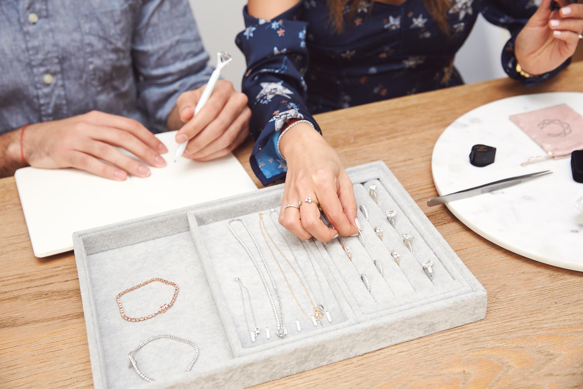 They started dating immediately, but it wasn’t until Simon returned from an ethical mining trip in Africa and Landau was working in diamond wholesale that the idea for The Clear Cut was formed. All of Simon’s friends were getting engaged and kept asking him to ask Olivia for advice on engagement rings. After going through the process a few times, she decided to set up an educational blog that made diamond-buying easier (and cheaper!) to digest for their friends and other millennial customers. Fast-forward to Olivia posting her creations on