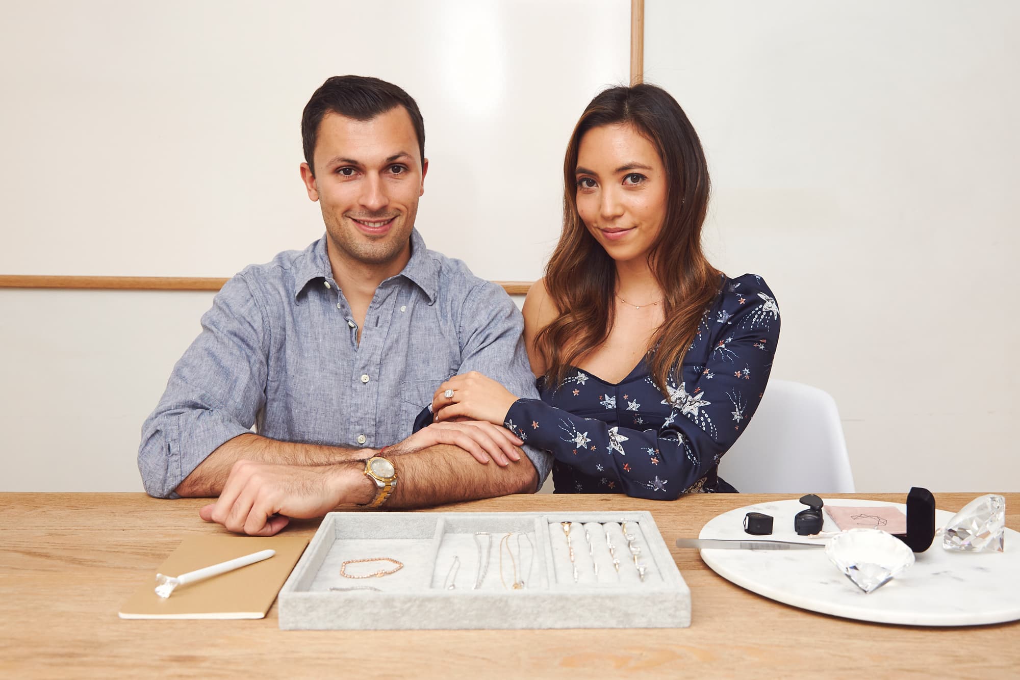 The story of The Clear Cut—a blog turned direct-to-consumer engagement ring and jewelry company—is the stuff of a modern-day romance meets breakout-business fairy tale. While both in school in New York at the Gemology Institute of America (aka GIA), Olivia Landau and Kyle Simon crossed paths. Landau, who comes from four generations of diamond cutters and sellers, was there studying the business, while Simon was researching diamonds for his fair-trade startup. Fate intervened when Landau offered to help Simon with his homework one day while they were both riding the F train after class.