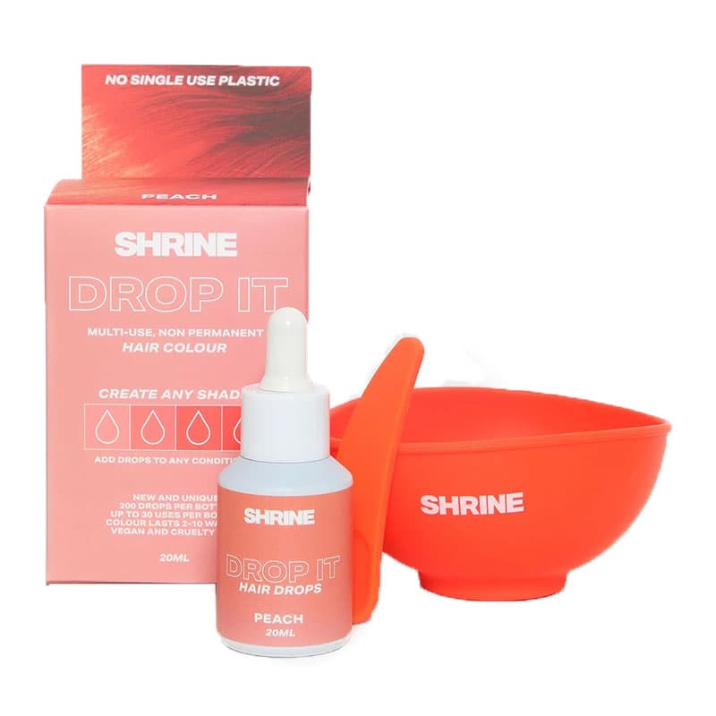 Ashley Shafer: “As far as a blonde wanting to switch up the tone, I’ve been loving the Shrine color drops. You can add it to any white conditioner. It comes with a mixing bowl, and if you want more pigment, you add more drops!”
