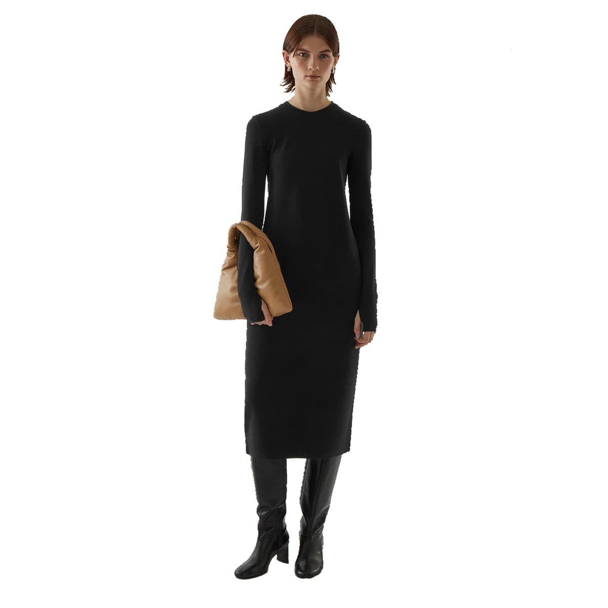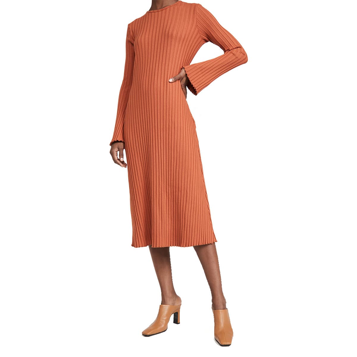 Ribbed Long-sleeve Midi Dress