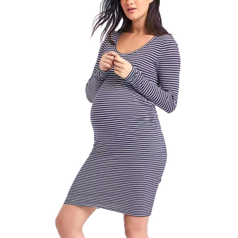 Nell Diamond, Founder & CEO at Hill House Home: “I did a lot of trial and error, buying and returning things online that looked like they may fit. ASOS and Topshop both have huge selections of maternity things online! Hatch was a true lifesaver for me. I was pregnant all through the very hot NYC summer, so their soft, flowy dresses were my go-to, often paired with a denim jacket to add structure. I loved their collaboration with BANDIER for pregnancy-friendly workout gear, too. In the last two months of my pregnancy, I discovered Nine In The Mirror and wished I had seen it earlier! They scour designers to find pregnancy-friendly clothing from non-maternity brands. I got a Maje dress that I probably wore twice a week (and actually wore to the hospital while in labor...).”