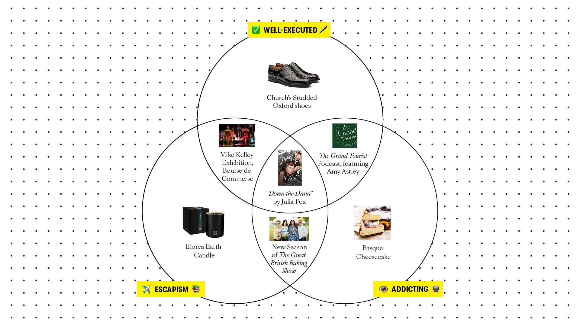 Welcome to Coveteur’s Consumer Diaries! As our co-dependent relationship with the algorithm deepens with time, the bottomless scroll has turned us all into 24/7 consumers. As we consume varying degrees of news, targeted ads, trailers, shopping, and user-generated content, all accordioned together in an endless feed—our consumer habits have reached a fever pitch. Each week, we are asking Coveteur staff members about what they consumed this past week, and connecting the dots on our consumer behavior with a trendspotting Venn diagram.