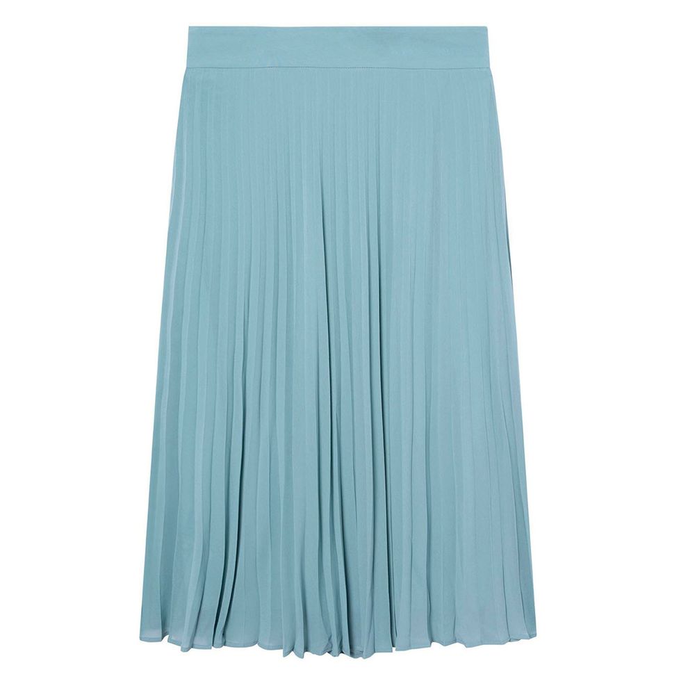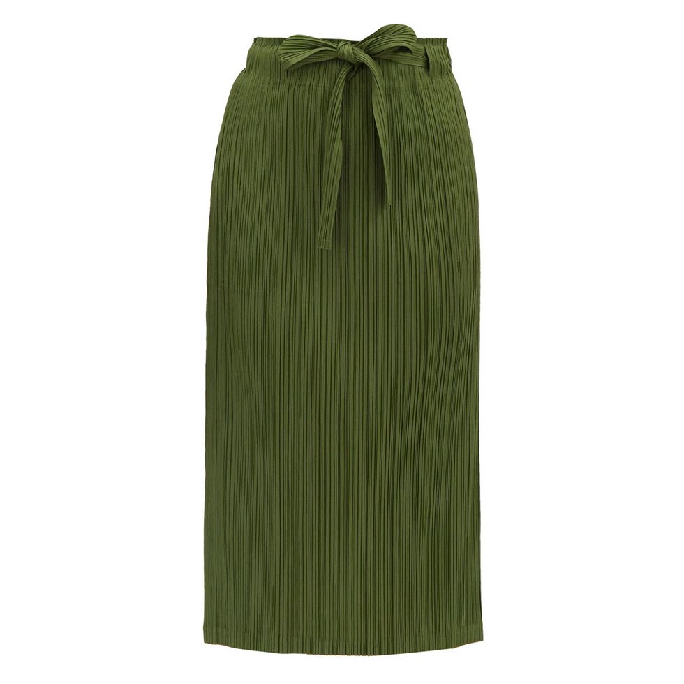 For those looking to experiment a bit more with color, this is a great option to dip your toe into that arena. It’s an attention-grabbing clash of colors, yet your full look won’t appear too busy. From sweaters and dresses, to loungewear and outerwear, there’s no limit on the ways you can style this trend.Solid-Hued Midi Skirts