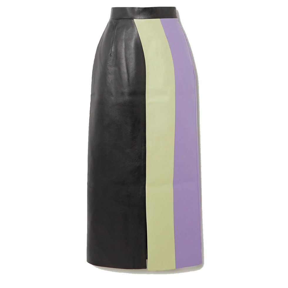 A midi skirt is already a wardrobe staple, but we saw them worn in swoon-worthy bold shades and often color-blocked with another color. While you may want to pair your favorite style with a seasonal appropriate ribbed tank top for the next few weeks, this is also a piece that can carry you through fall (and even winter with the right pair of tights and boots).Leather