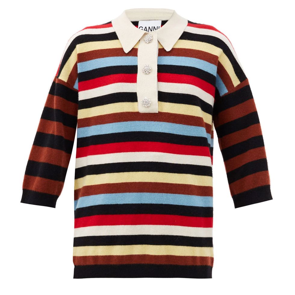 Showgoers proved how to make this preppy piece look elevated and cool with modern styling. We saw a lot of riffs on the rugby shirt and oversized versions of the classic polo. Take a cue from the resort collections and style your favorite iteration under everything from a knit dress to a beaded mini.Tank Maxis