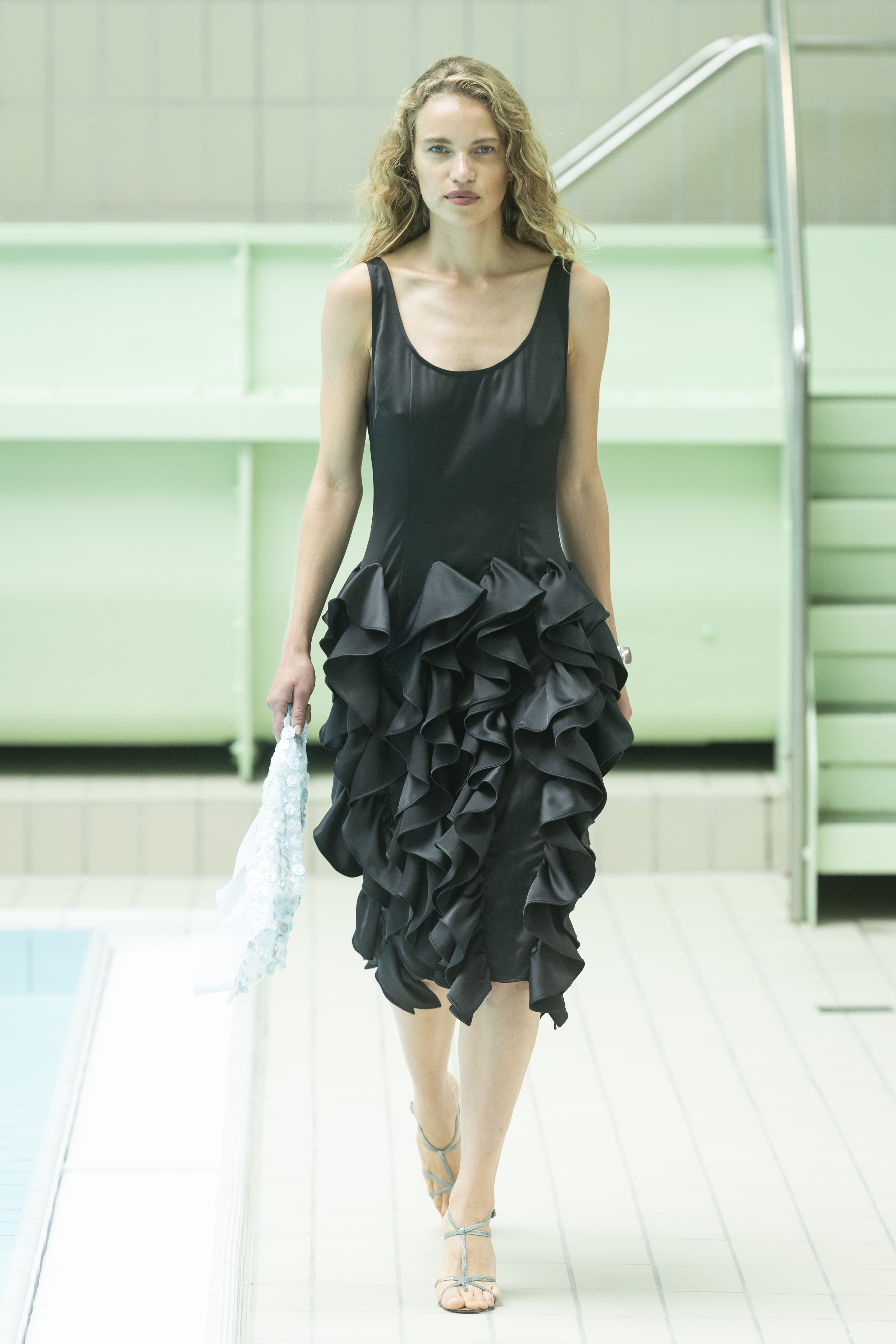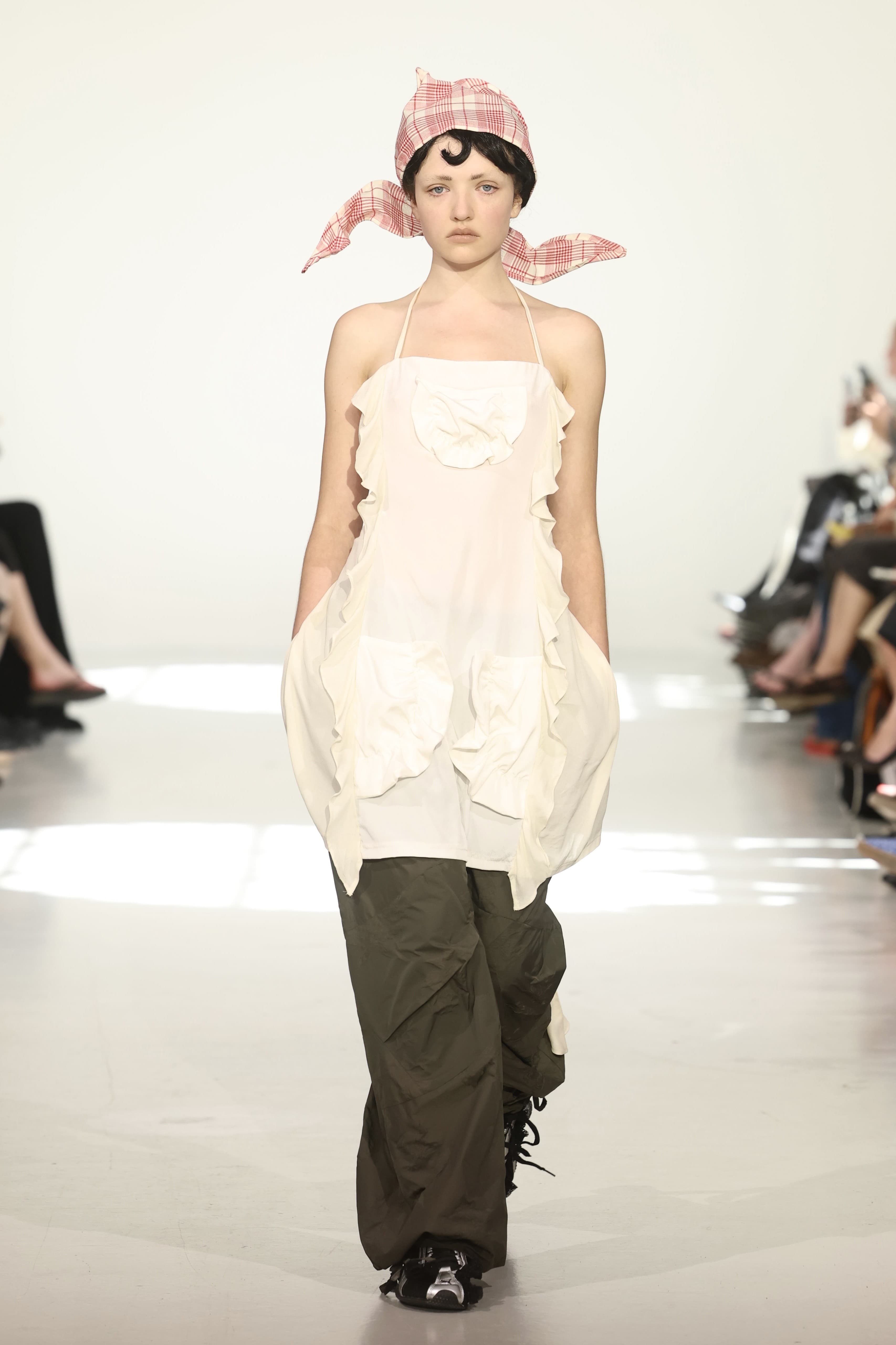 Rave Review Spring 2026 Getty ImagesAt OpéraSport, Anne Sofie Madsen, and Rave Review, all signs pointed to a very layered school of thought. Ruffled skirts and bras cut through ladylike dresses and tailored trousers, adding a sense of Danish fun to the whole thing, as did the coquettish energy at Rave Review, who, known best for their use of deadstock fabric, incorporated ruffly apron-like tops, skirts, and dresses amongst tea dresses and techy jackets. At Anne Sofia Madsen, the ruffles were slightly more offbeat, showing up sheer and girly on strappy tops and almost bridal-like white gowns.