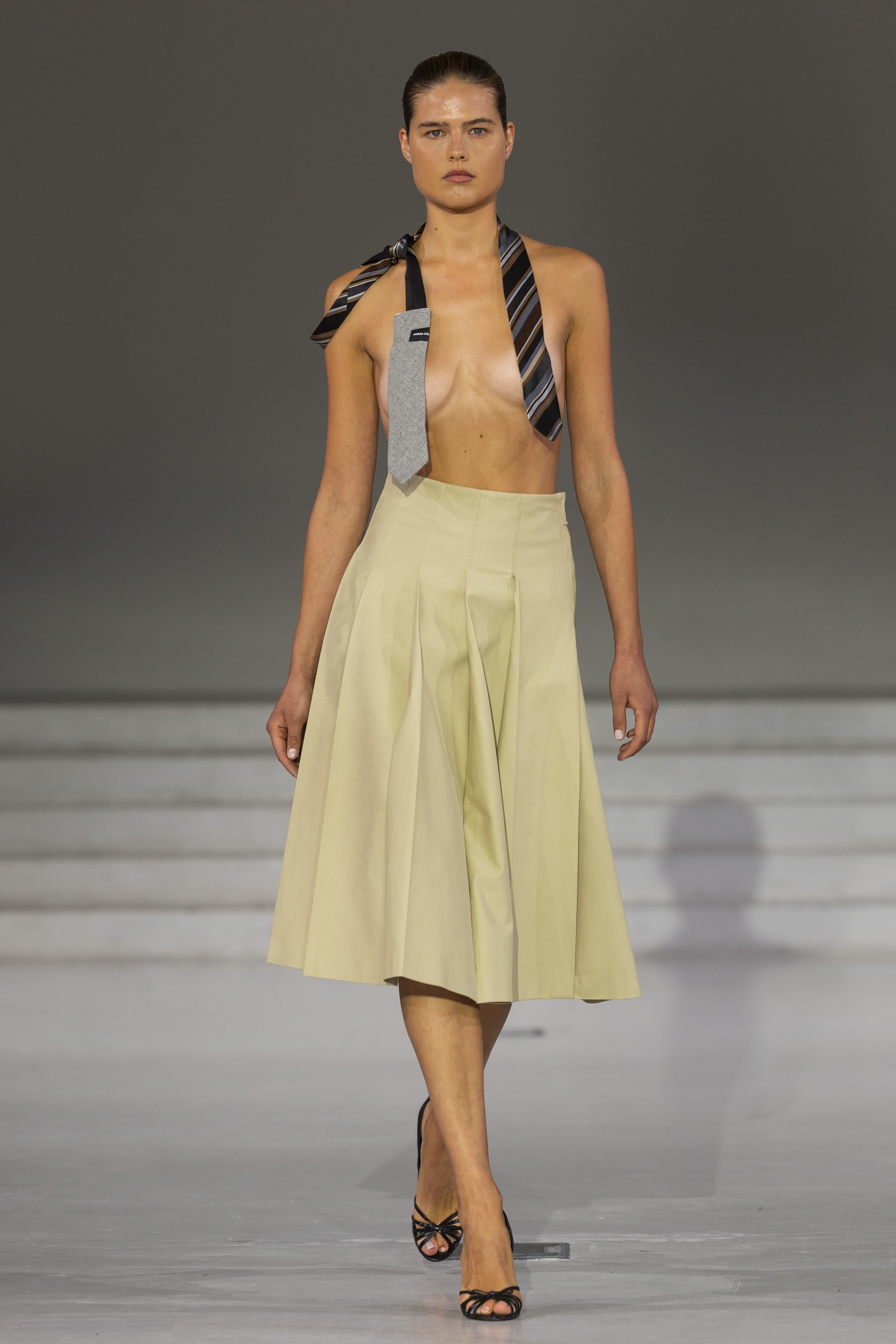 Alis Spring 2026 Getty ImagesIt was a tiny top moment at Forza Collective and Alis this week, where summery separates were rendered in the form of bra-tops crafted from neckties and tartan fabrics. Each of the looks were paired with beige bottoms, in keeping with a fresh palette for the summer season. Expect to see more scantily-clad moments in the city this summer.