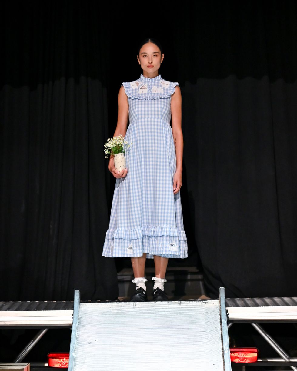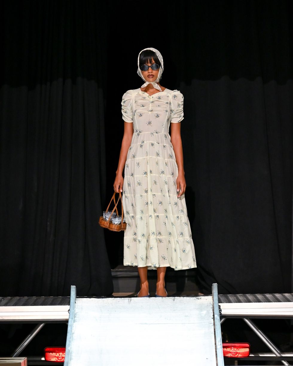 For her Spring/Summer 2026 collection, Elena Velez made it clear to Vogue that this was not the energy she wanted to claim for the show, which featured dainty headscarves and dirtied cotton corsets, whereas at Sandy Liang, the uplifting mood was a nod towards childlike wonder, personal treasures, and play. Tanner Fletcher’s show was all heart, and the nostalgic prints and vintage tea-dresses worked here because of that. In the midst of such a fraught moment in geo politics, heart is exactly what we could all use a bit more of at the moment.