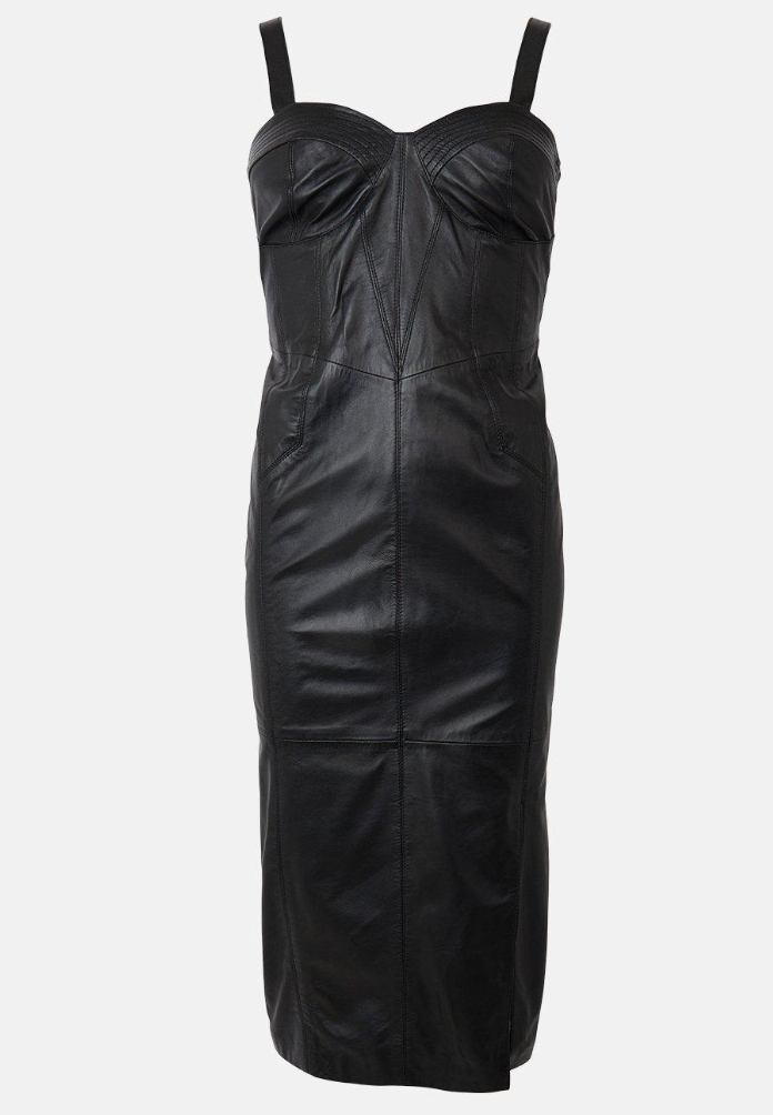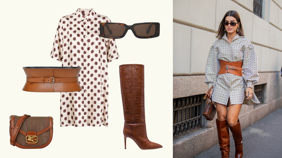 Pairing a shirt dress with a corset belt is a bit ingenious, if we do say so ourselves. The clinched detail from the corset coupled with a pair of knee-high stilettos makes this outfit ideal for any occasion from a picnic date to cocktail hour.