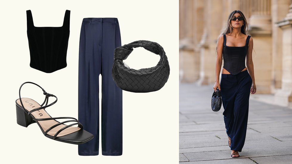 Have a fancy dinner at 7 p.m. but stuck at the office all day? This waist-hugging corset coupled with the loose trouser is the perfect day-to-night outfit.