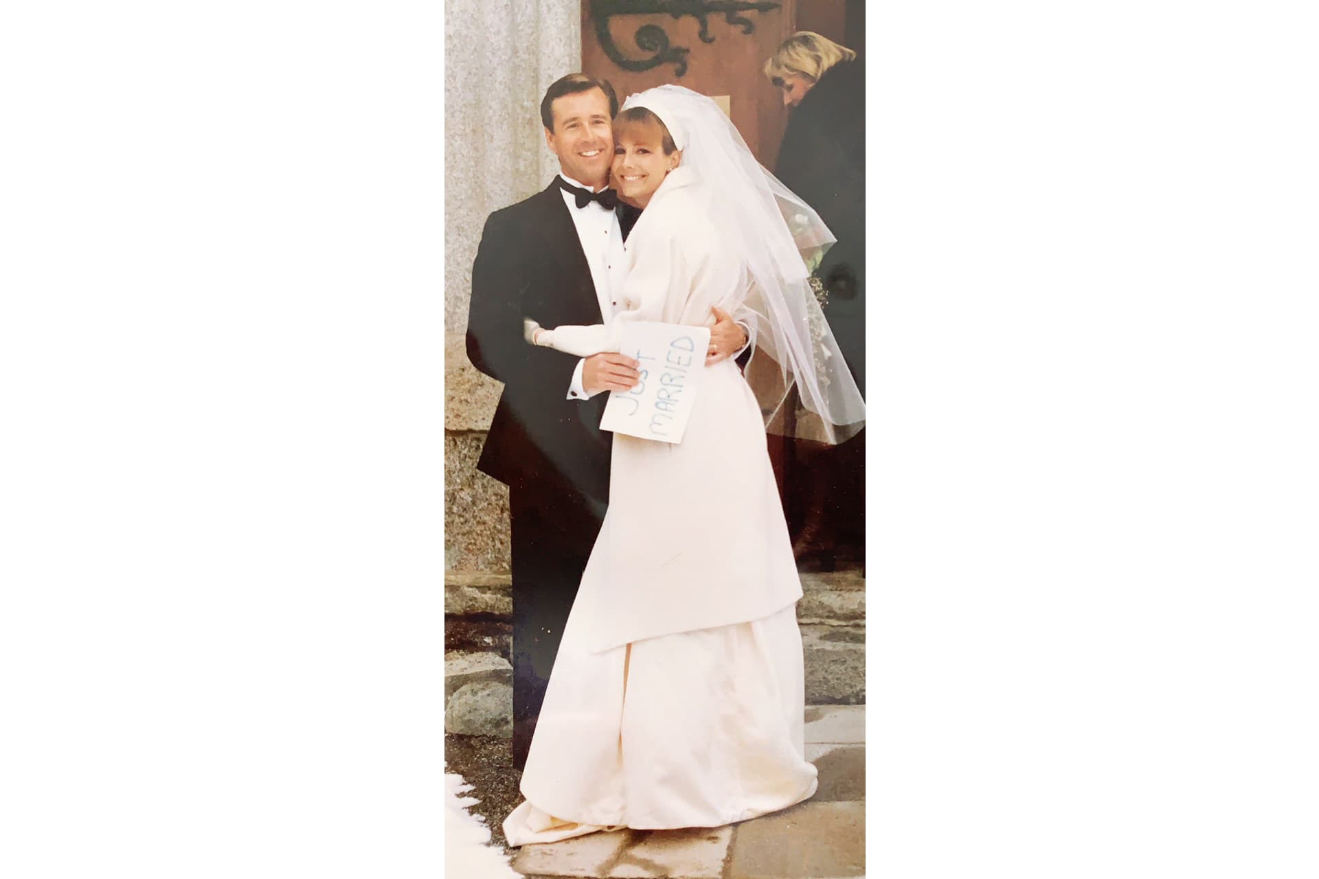 “After dating each other for more than 10 years, we wanted to get married in a way that was more about us than the wedding event itself, so we eloped to Zermatt, Switzerland, where we skied with a few close friends and family. Britt wore her mom’s wedding dress from 1958, and I wore a tux from 1989, but it was still a classic. Oh, and one more thing—Britt’s mom found out about the wedding and flew to Switzerland to surprise us. I remember telling her, ‘If I’d known it was going to be this good, we would have been married much sooner!’ We just celebrated 30 years of an incredible relationship and hope our daughter wears the same dress for good luck!”