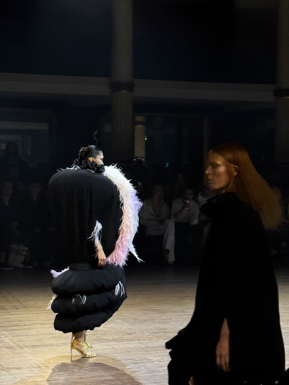 Isabel BazzaniThe day finished up with Viktor & Rolf. I always look forward to this show for their conceptual theatre and oversized outfits playing with volume, tulle, and exaggerated proportions. This season, each look came with a twin. The same garment shown side by side: one theatrically inflated with feathers and volume, the other deflated and bare, like its shadow. A clever play on excess and restraint, both styled (as always) with satin Louboutins.