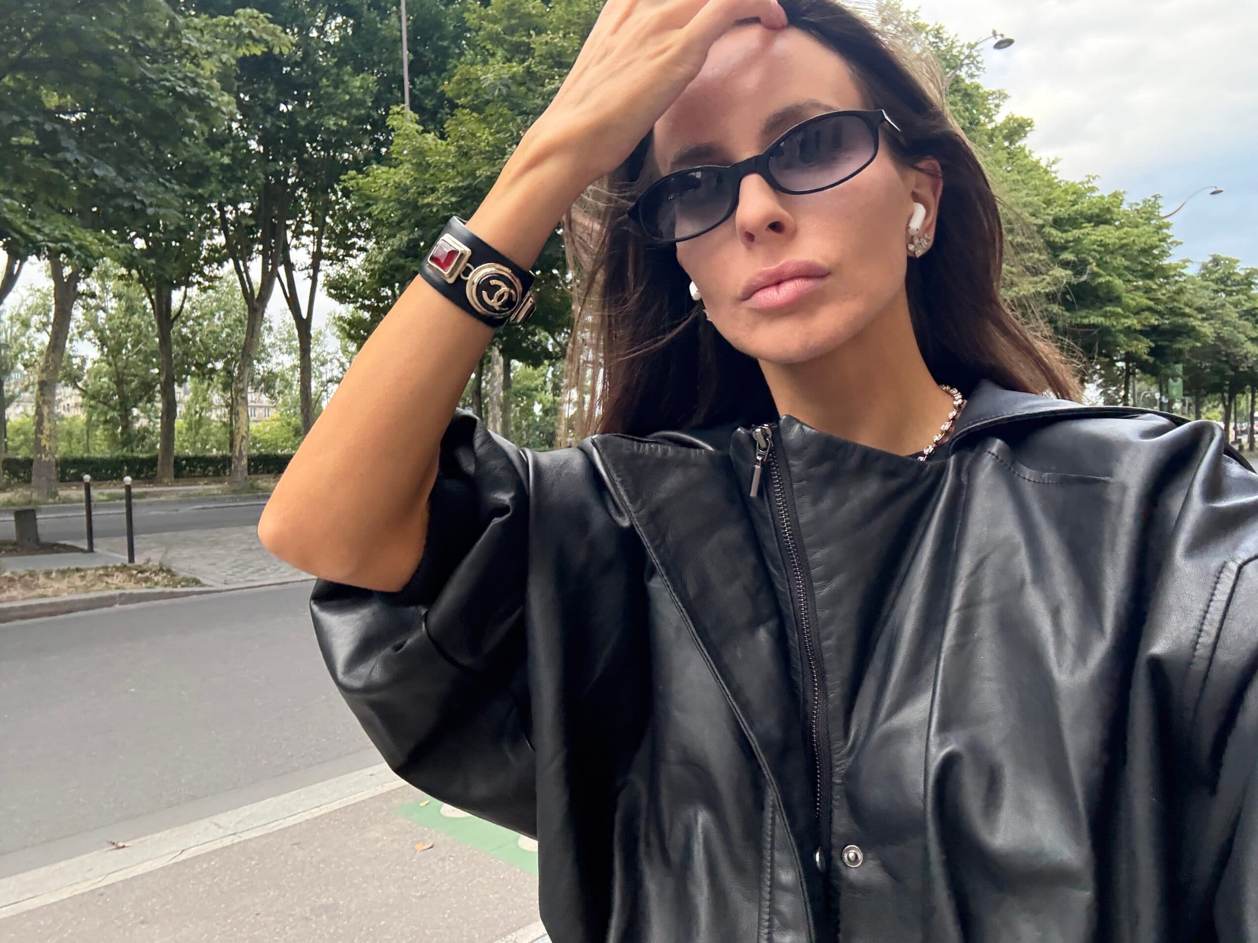 The final day was slower on paper but no less intense behind the scenes. I wore a vintage Gaultier jacket with Pierre marly 1960s cocktail sunglasses, the very frames once favored by Jacqueline Onassis. I met a client at Le Meurice and, over green tea, we sifted through the week’s runway highlights, pairing each haute couture look with a future occasion and plotting which maisons to call first.