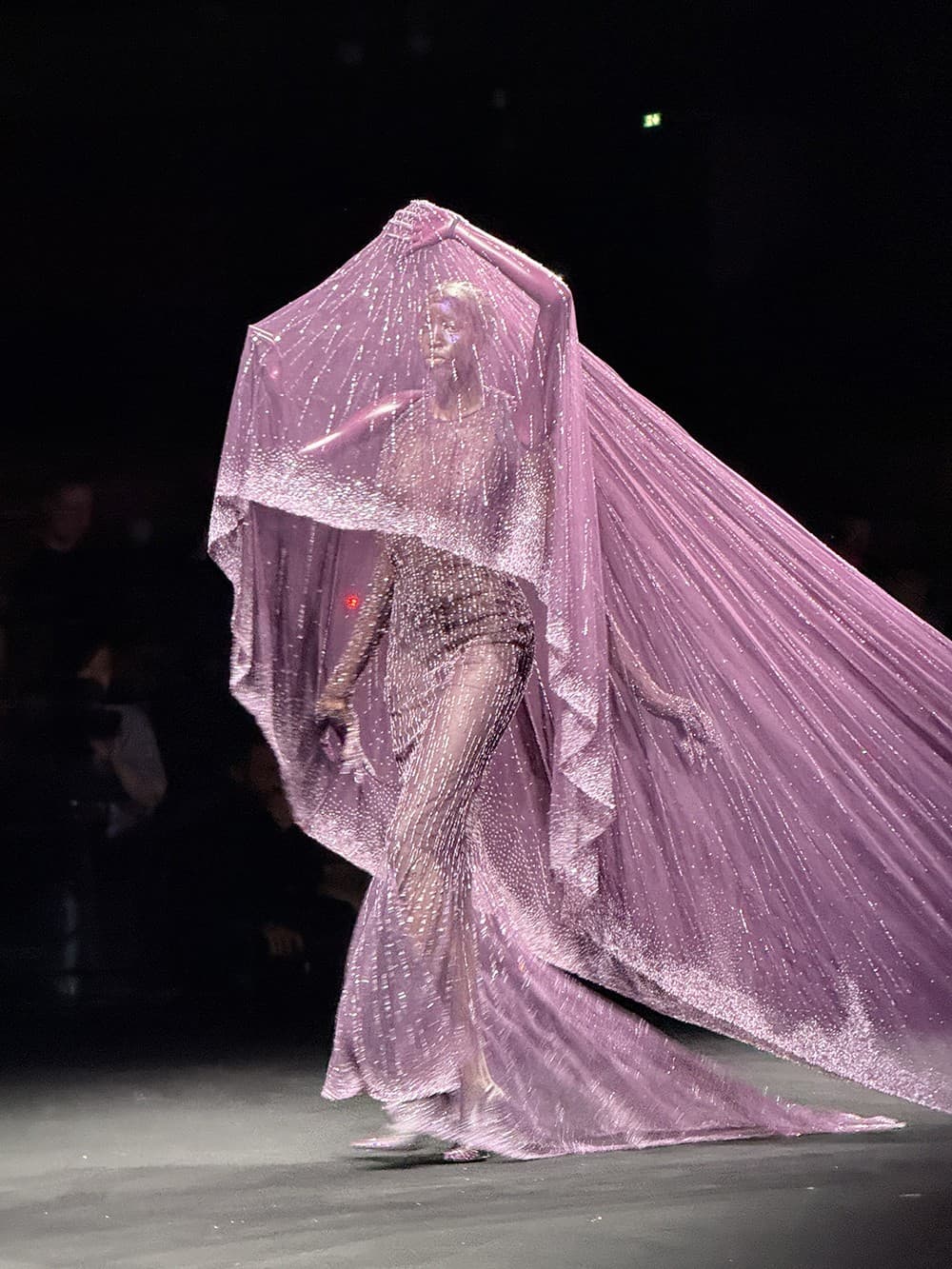 By midday, I arrived at the sunlit space of Fondation Cartier for the ArdAzAeii show. The Folded Sea collection unfolded in watery pleats, sun-rippled silks, and oceanic pastels, a tribute to the beauty and fragility of life beneath the surface.