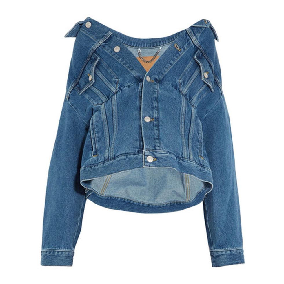 3. Balenciaga Denim Jacket: You know how everyone loves to roast fashion people for wearing jackets propped up on their shoulders? Something about spending $1,000 on a denim jacket that deliberately sits off the shoulder feels like a really delightful middle finger to that.