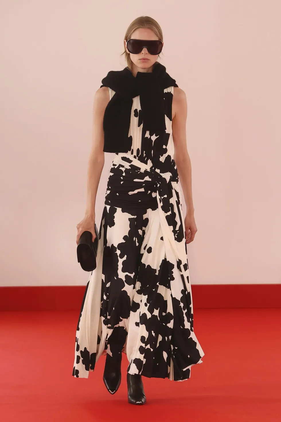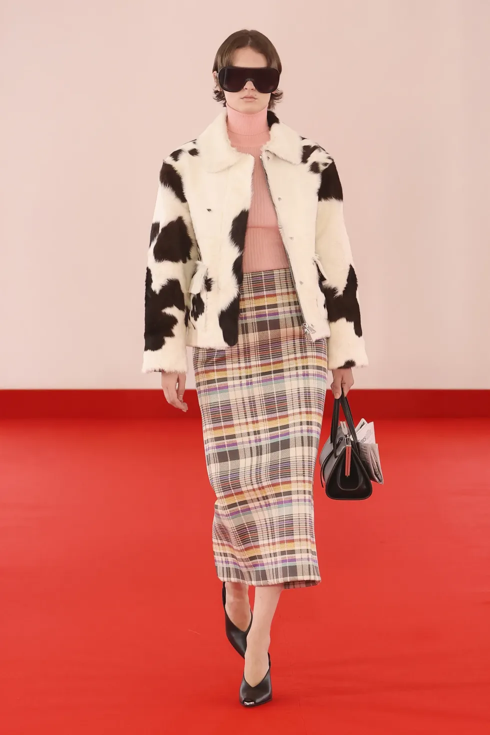 At Brandon Maxwell's Spring/Summer 2026 show during New York Fashion Week, models walked down the runway in cowhide jackets and a cow print dress, serving of how multi-faceted the trend is and, perhaps, a preview of interpretations to come.