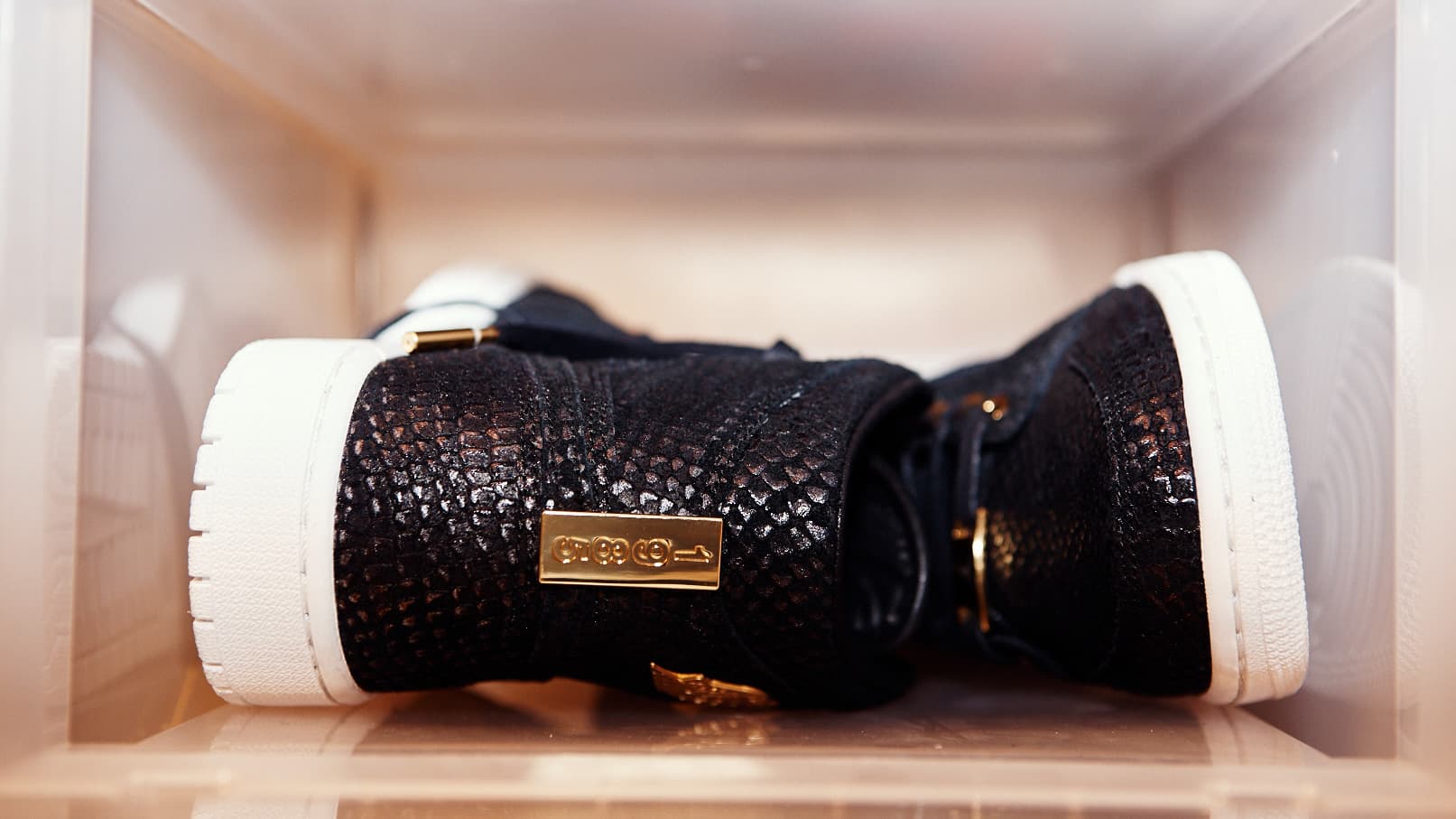 “I switched to drop-front boxes really recently because the other lid containers are hard to access when you’re stacking 15, 30 pairs. Now I can actually get to a shoe. It used to take me so long to get dressed because I couldn’t get to what I want, and I end up wearing the same shit all the time. It’s like the cereal aisle.”