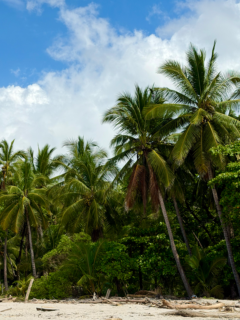 I spent the years bouncing between Central America, Southeast Asia, and Europe, yet the first place I visited was the one that kept calling me back time and time again: Santa Teresa, Costa Rica. This town is magic; there’s not a beach chair or commercial hotel in sight, just the lush canopy of palms meeting the energetically infused, rose quartz-colored sand while a subtle layer of mist lingers over the shoreline. There’s something to be uncovered here. The town runs along one dirt road where locals, ex-pats, and digital nomads drive ATVs up and down the muddy terrain, towing surfboards on the back, en route to cafes tucked in the foliage. Howler monkeys and brightly colored birds that you’d never be able to name dot the trees overhead. It feels like you’ve entered a place that would only be possible to exist behind a screen or within the pages of a book.