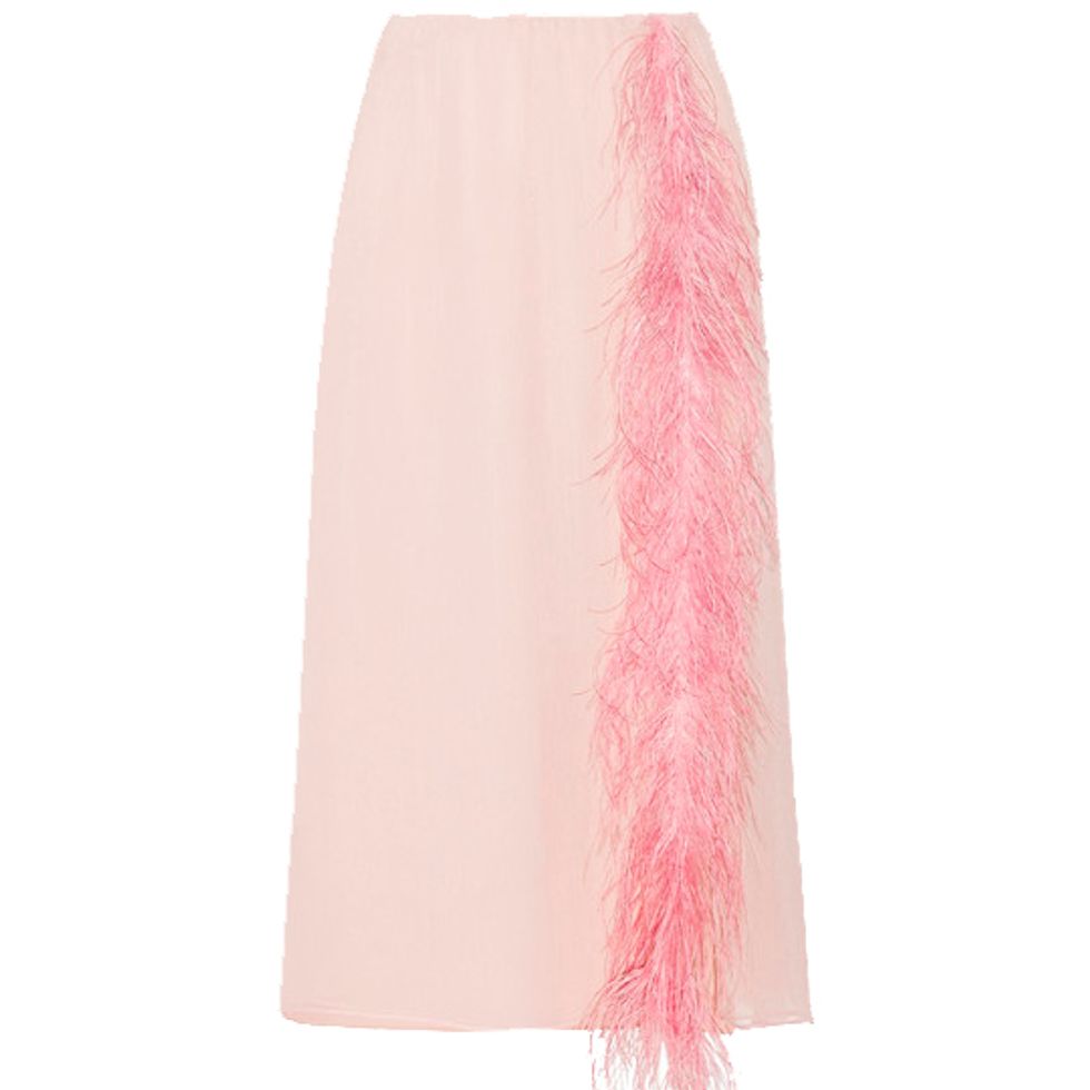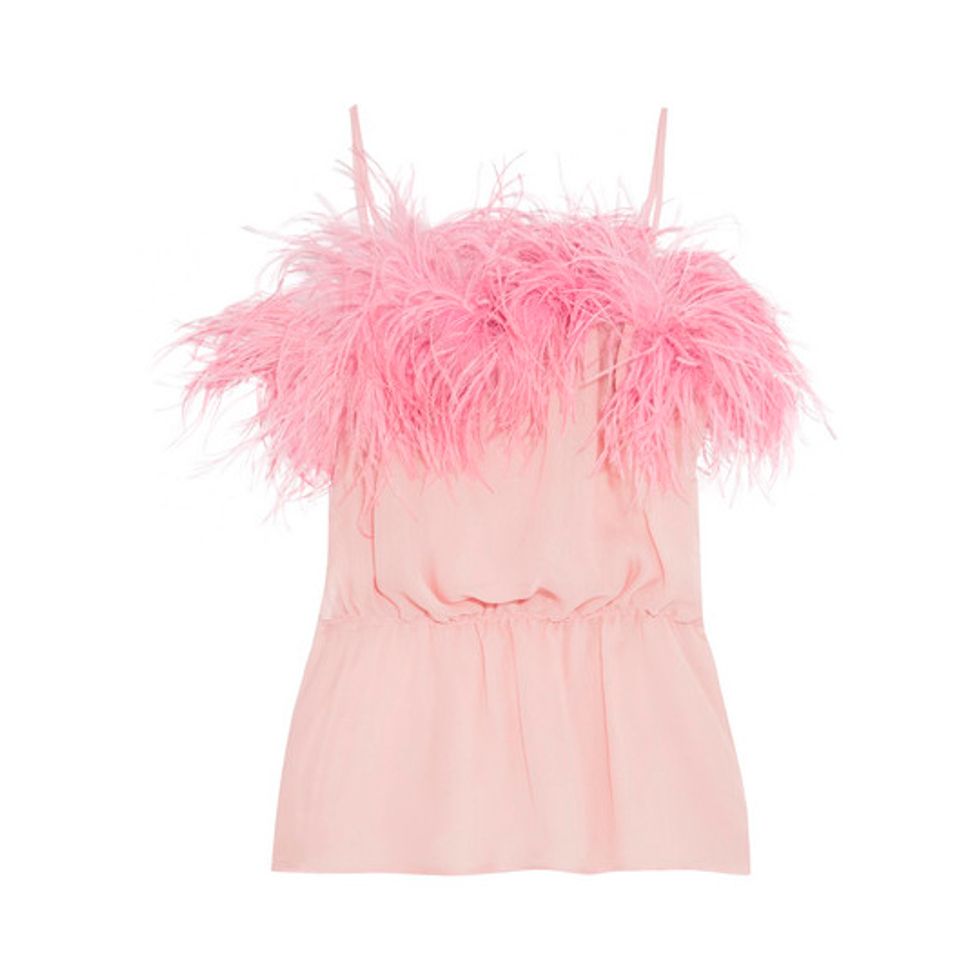 SANTA MONICA, CA - JANUARY 11: Angelina Jolie arrives at the The 23rd Annual Critics' Choice Awards at Barker Hangar on January 11, 2018 in Santa Monica, California. (Photo by Steve Granitz/WireImage)It’s hard not to be reminded of the pink Prada feathered goodness of Spring ’17 when looking at Jolie’s look last night. Although the feathered top looks more red carpet than everyday, we’d wear ours with a pair of combat boots to make the look less precious.