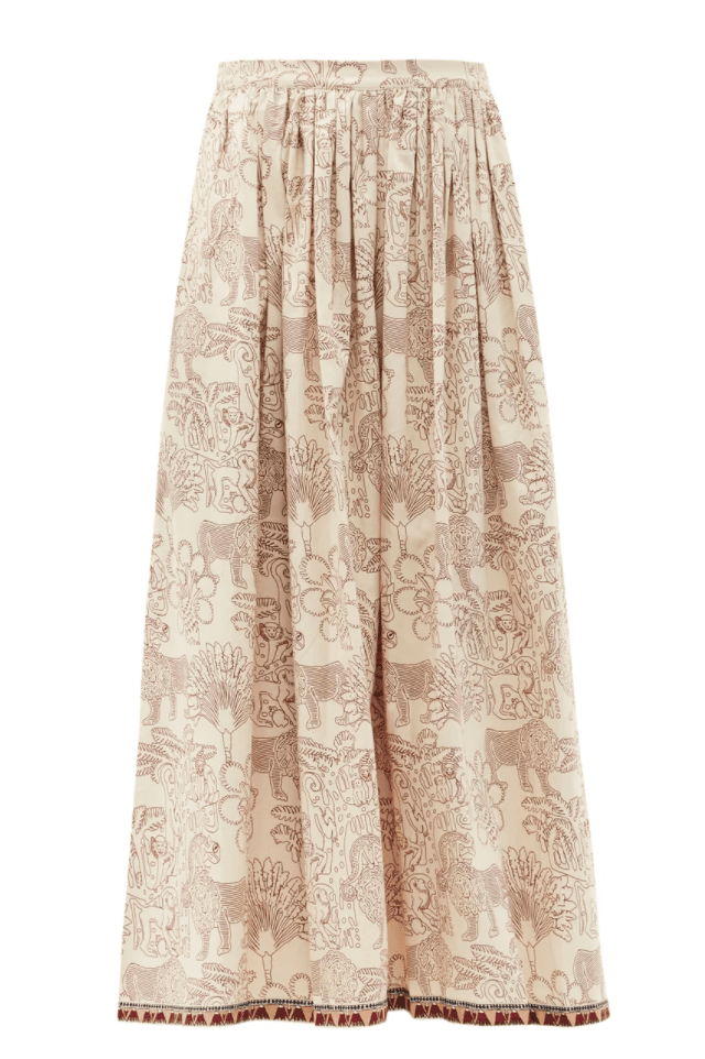 Jane Lion and Monkey Print Cotton Midi Skirt