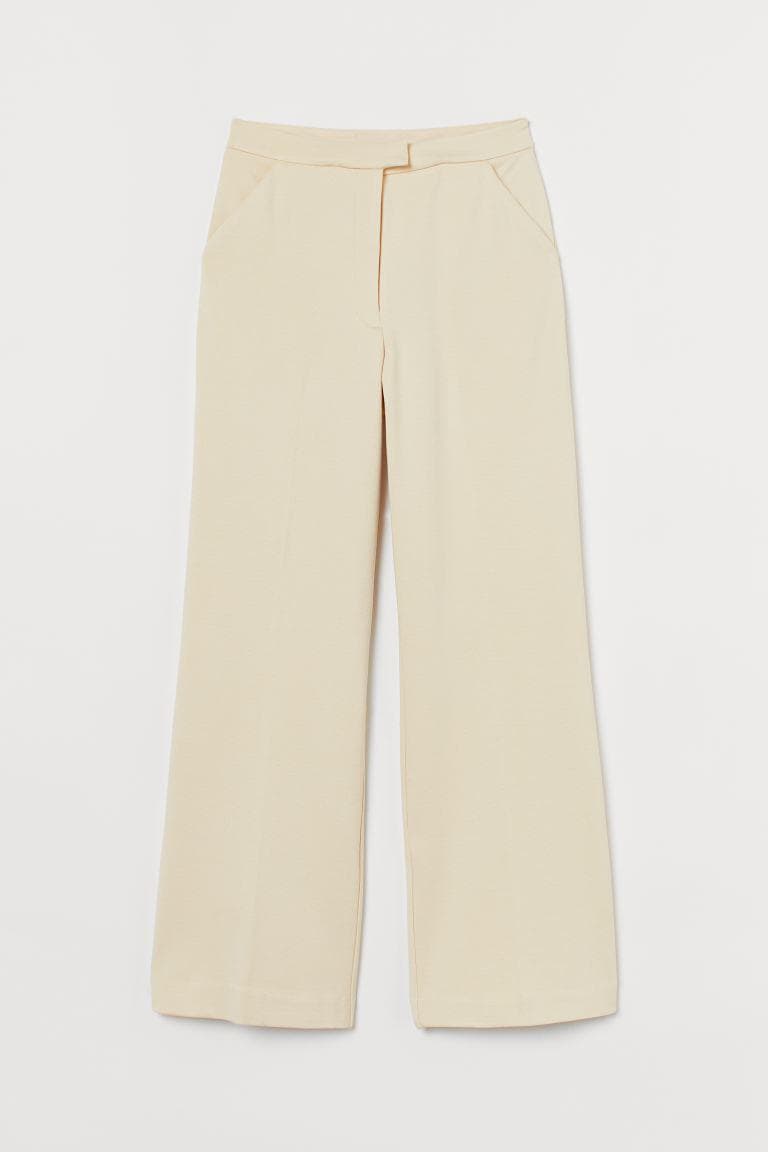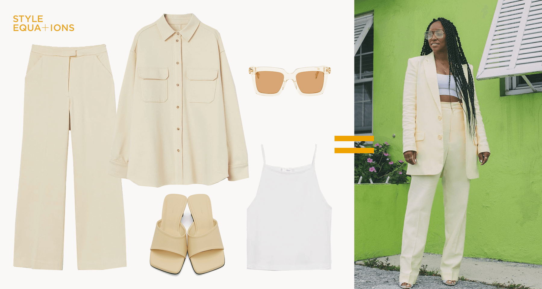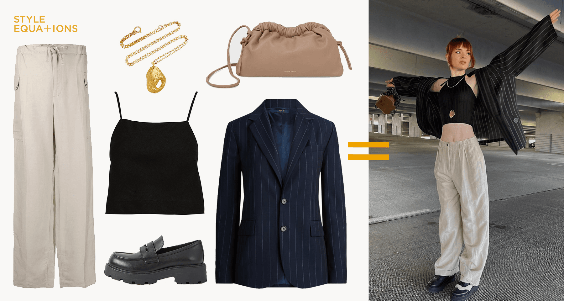 Right photo: Courtesy of Instagram/@seaofshoesAnother friendly option for transitional weather, the addition of a blazer always adds a dose of polish. The natural linen hue of the pants complements the pinstripe to tie everything together.