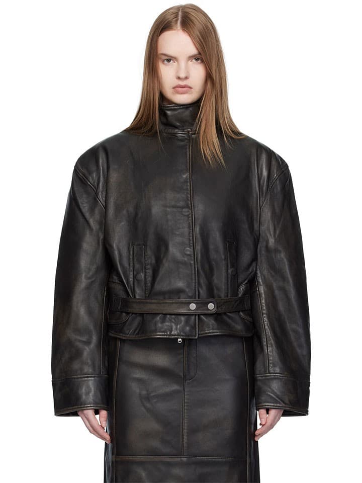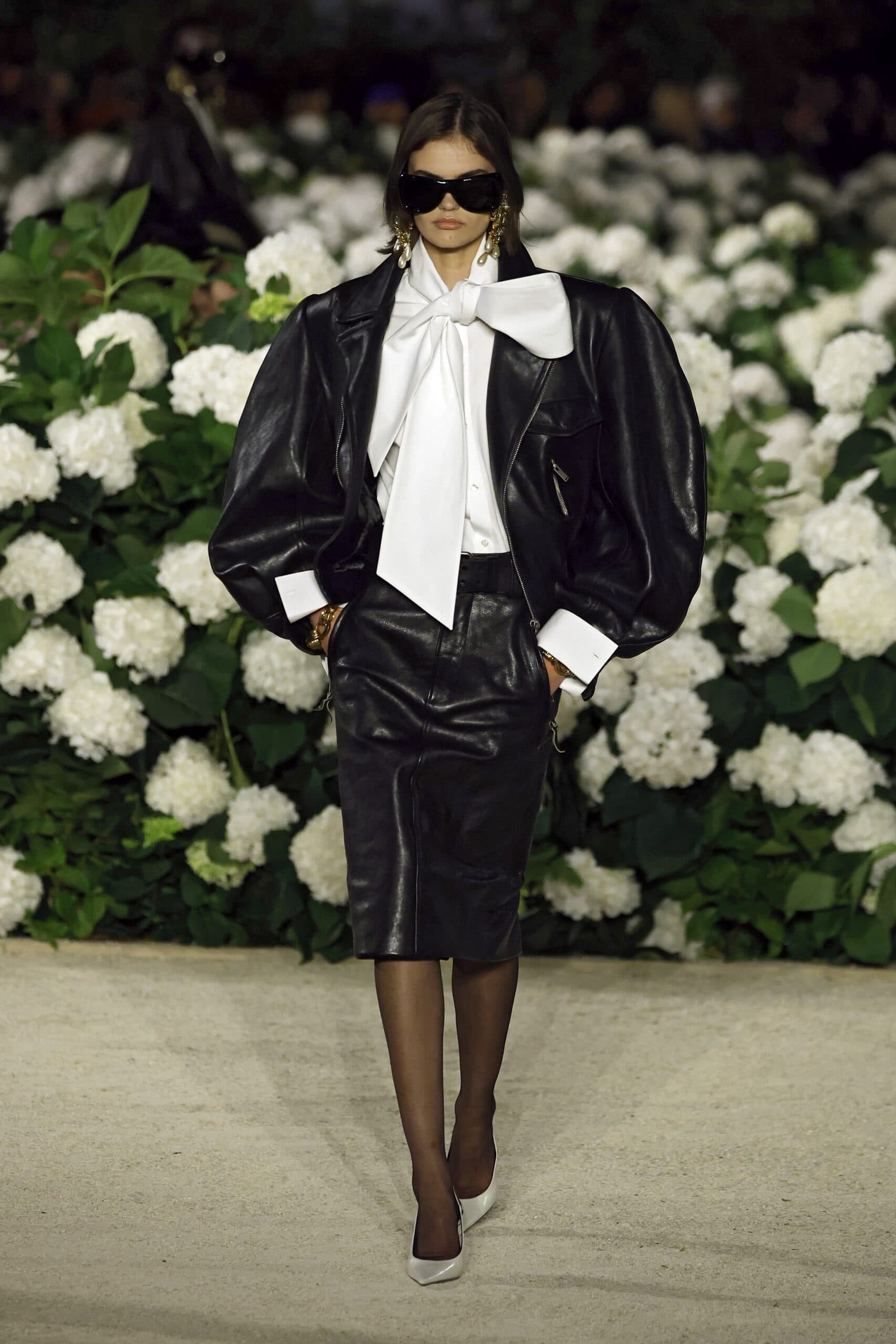 Back in New York, Tibi sent perfect water resistant high-necked bomber jackets down the runway, while at Khaite, creative director Catherine Holstein was focussed on leather bombers with shearling-lined collars and shiny leather blazers with cape-like arm holes.