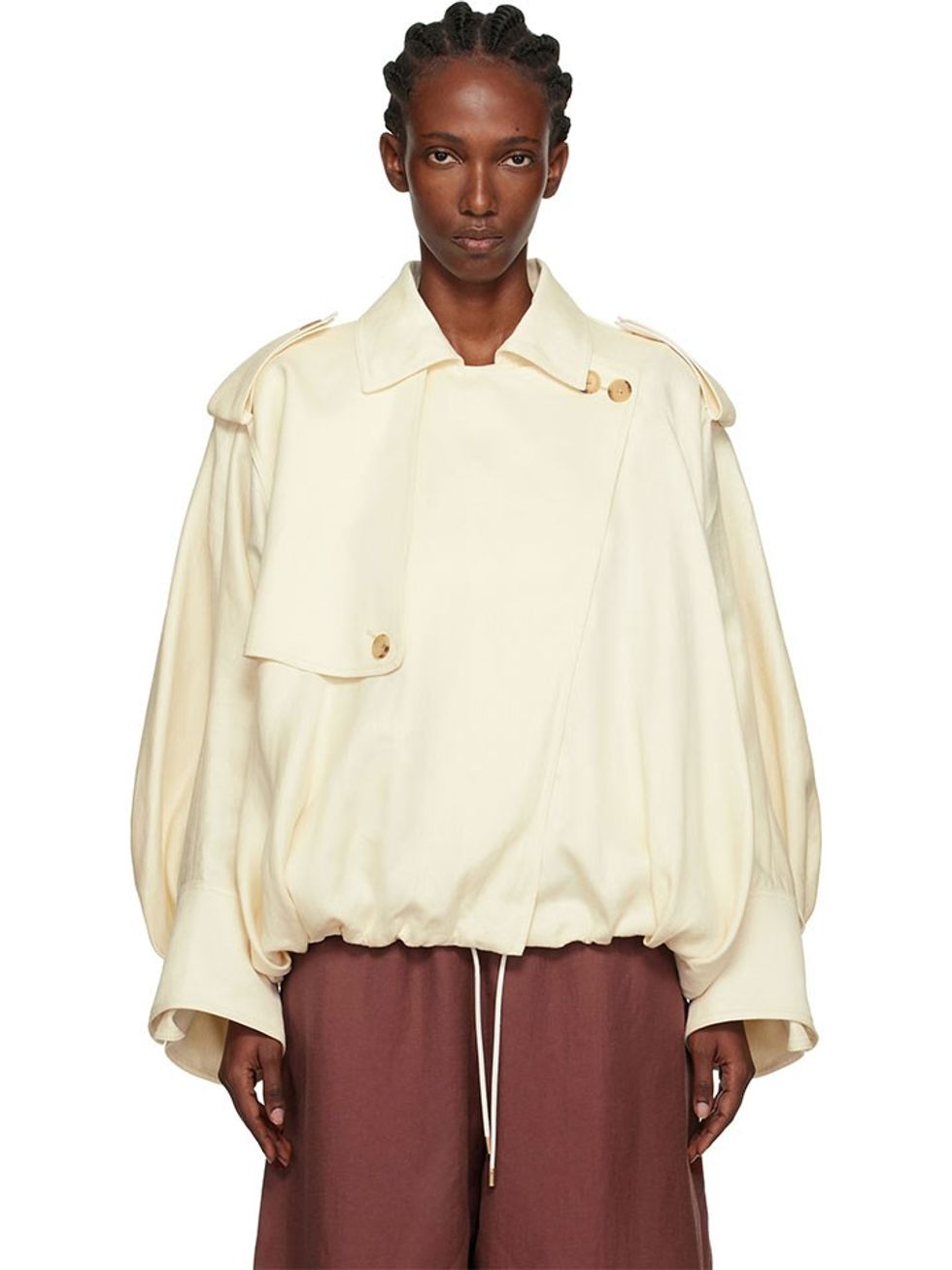 Over in Paris, Alaïa’s Pieter Mullier offered a number of cocoon-like coats with high necks that stopped just below the hips, alongside Anthony Vacarello, whose first half of Saint Laurent’s Spring/Summer 2026 collection was a series of oversized leather bombers in various shapes. At Isabel Marant, it was all about the utility jacket in calico and drill cotton, while at Alexander McQueen and Ann Demeulemeester, military jackets because the bitchy outerwear of choice.