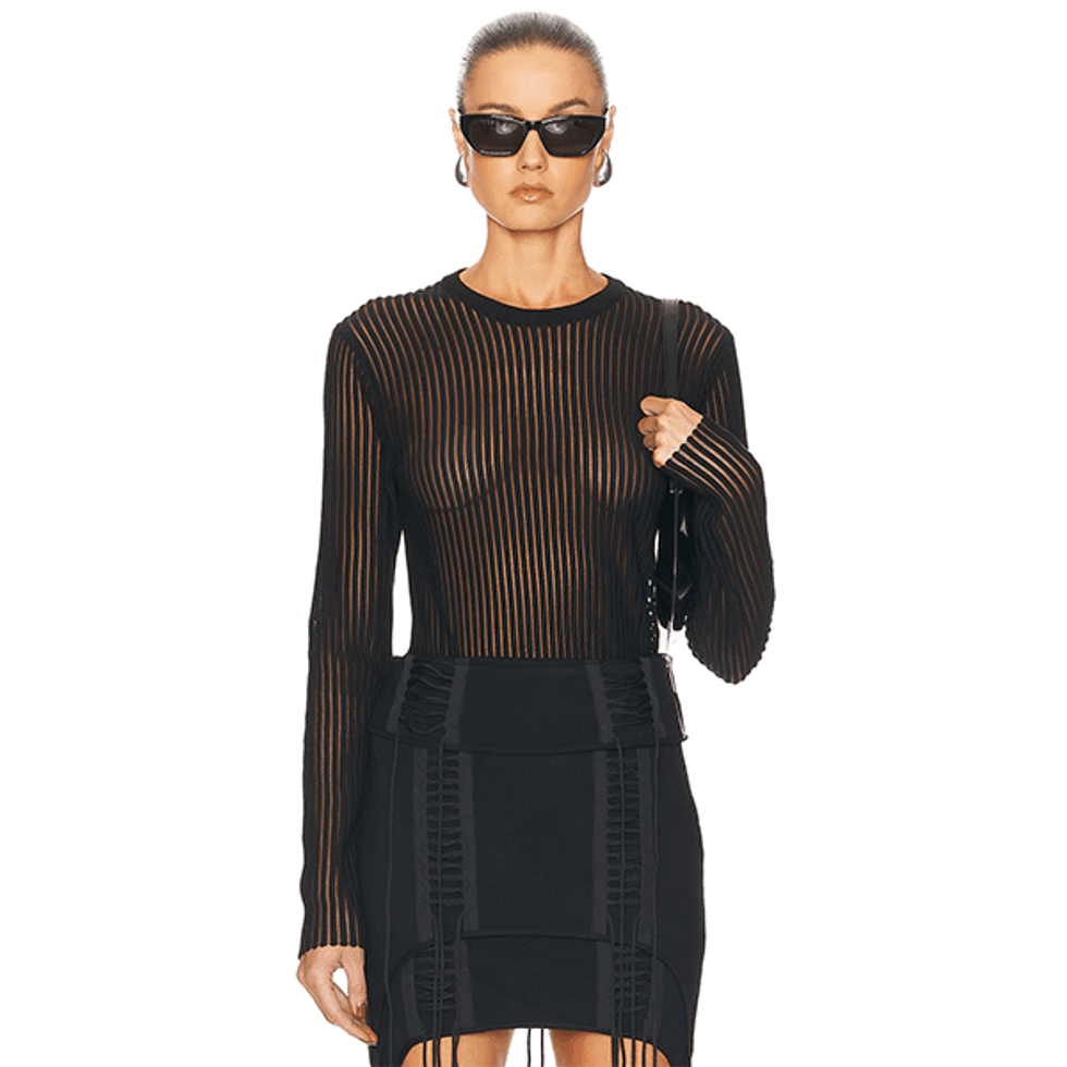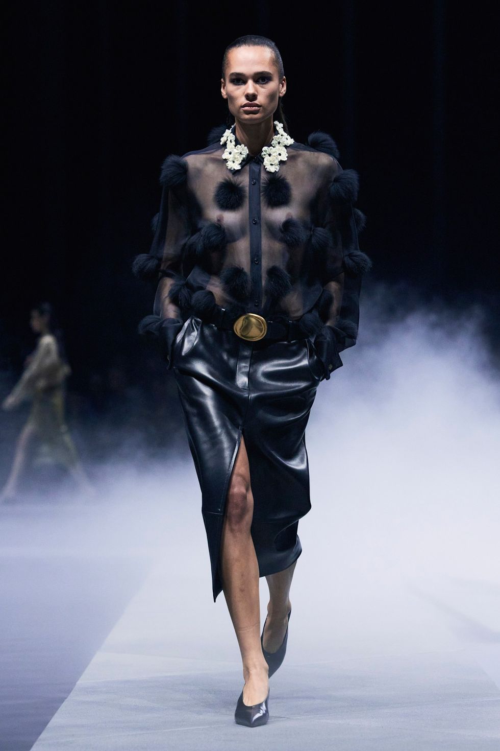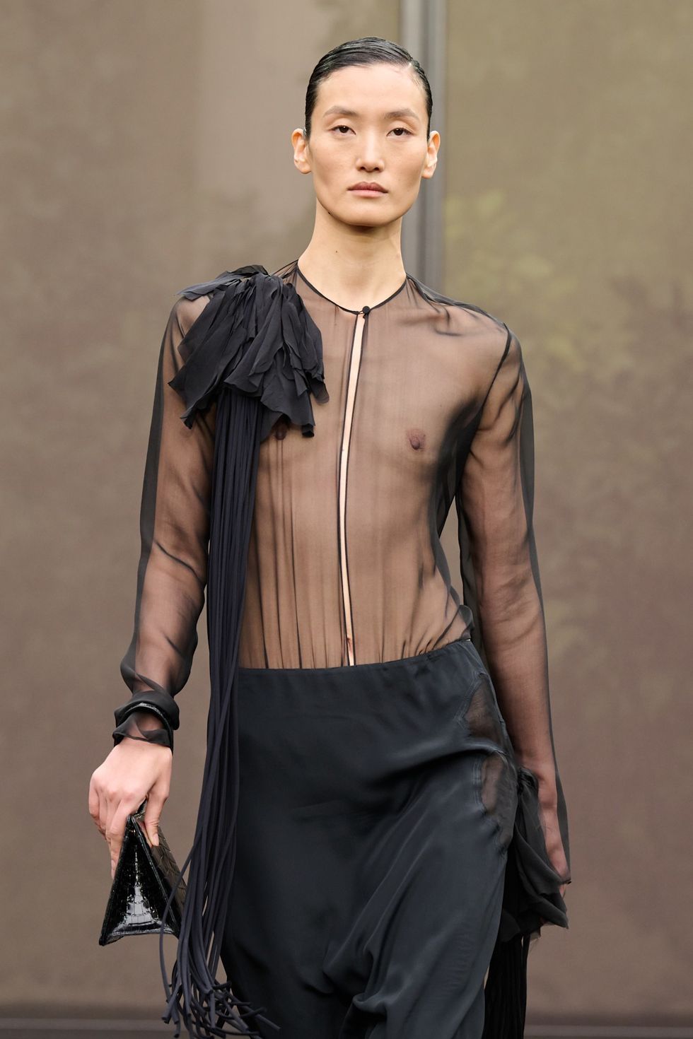 From dresses to skirts to tops, sheer was trending on the Spring/Summer 2026 runways, with Moschino teasing with a woven, fishnet inspired top with embroidery that covered up anything from being exposed, and Ferragamo completely freeing the nip. Designers made a case for leather in the spring, too, especially in the form of skirts as seen on the Hermés and Khaite runways.