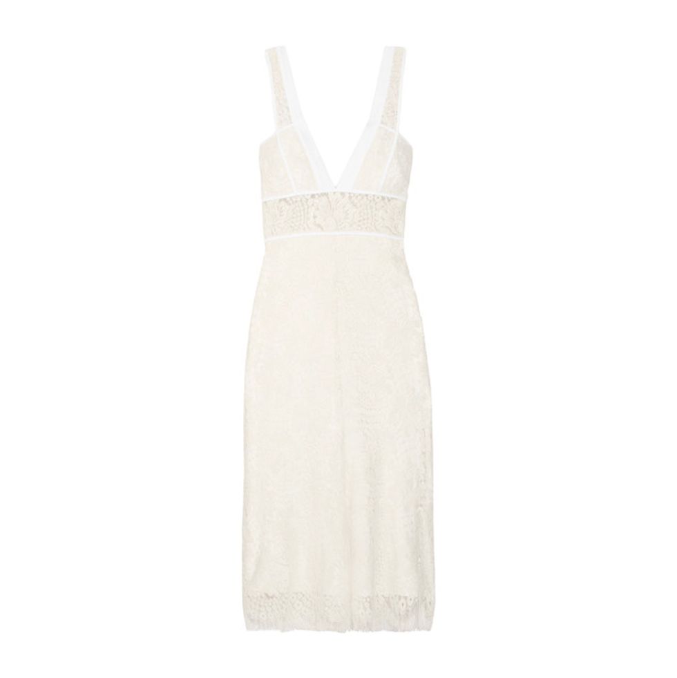“A bridal shower is the perfect occasion to wear a feminine day dress with a floral print or textured lace. Think having tea with the Queen—it’s the time to be more traditional and classic, rather than modern or edgy. All of these dresses could be re-worn with a blazer or sweater and shoe for a day at the office.”