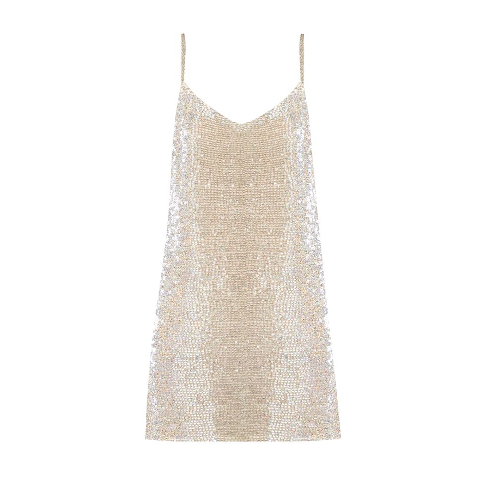 “The late night reception dress sets the mood for dancing and should be playful and fun . Short and sequined or romantic and silky—think Edie Sedgwick or Gretta Garbo to dance the night away. This is a dress you can wear again on New Year’s Eve or birthdays to come!”