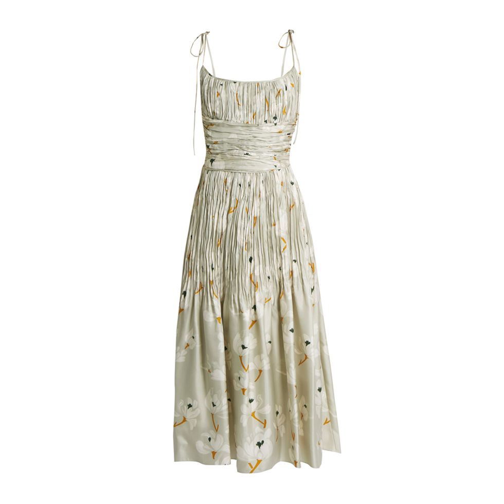 So I enlisted the help of Cynthia Cook Smith—wedding stylist behind Cynthia Cook Brides and former assistant to Anna Wintour—who puts together outfits for the types of brides whose hashtags we’ve stalked to the umpteenth degree on Instagram. Smith and her clients choose looks for a variety of wedding celebrations, from that first welcome cocktail, to the late night reception dress and everything in between. They most definitely aren’t your typical pieces: they’re on trend yet classic, and there’s no shortage of color or prints involved. Case in point? A dusty pink Gucci ensemble she picked for pre-wedding festivities in sunny Positano, or a gold jacquard Stella McCartney number for a New Orleans rehearsal dinner. Suffice to say, Cynthia's got the Midas touch, and thankfully, she was game to round up her three picks for various wedding-related events. If you’ve got upcoming spring or summer nuptials, it’s time to go shopping.