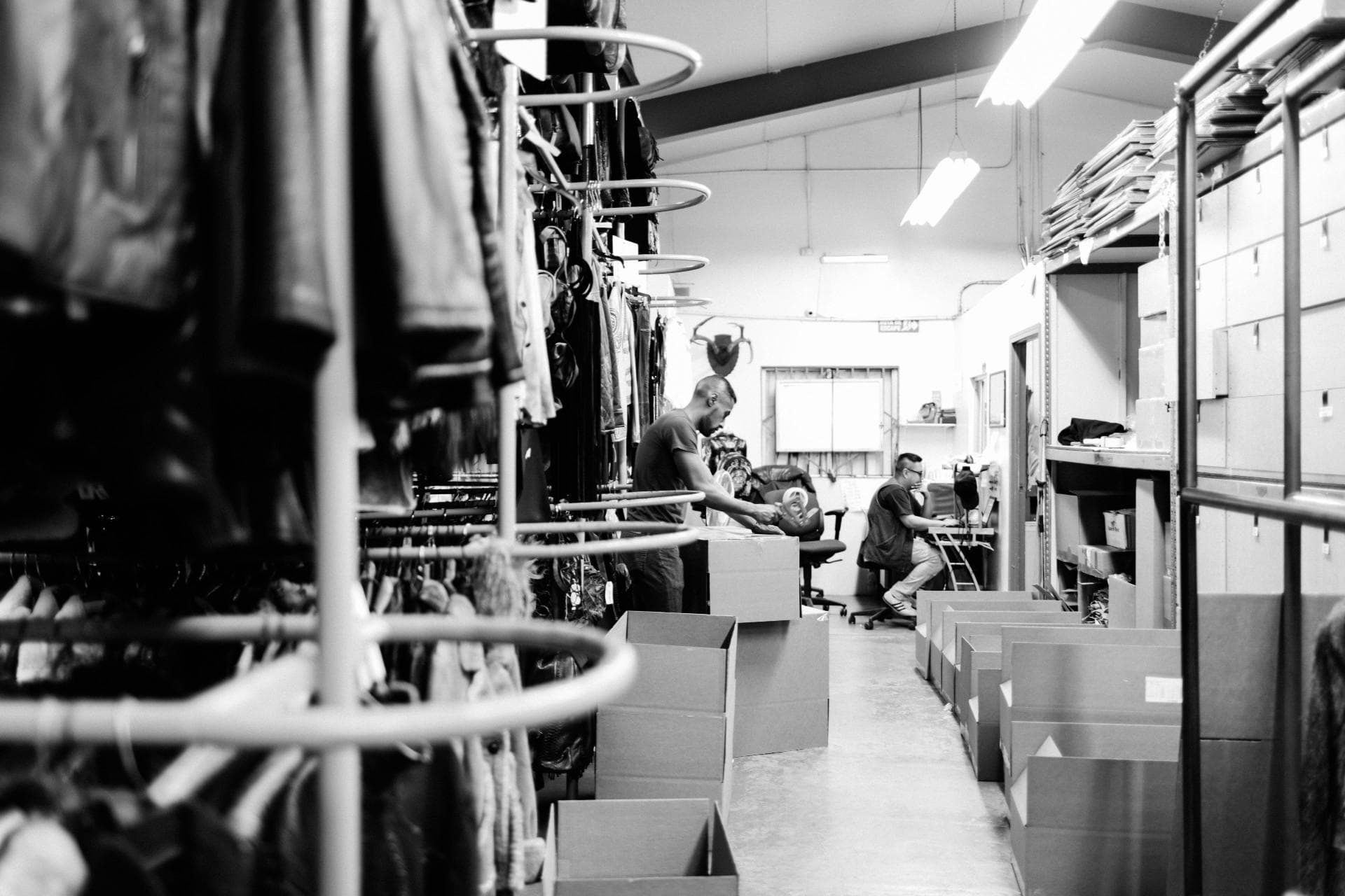 Sourced leather hangs ready to be made into a piece of clothing; Photos: Courtesy of Dan Cassab