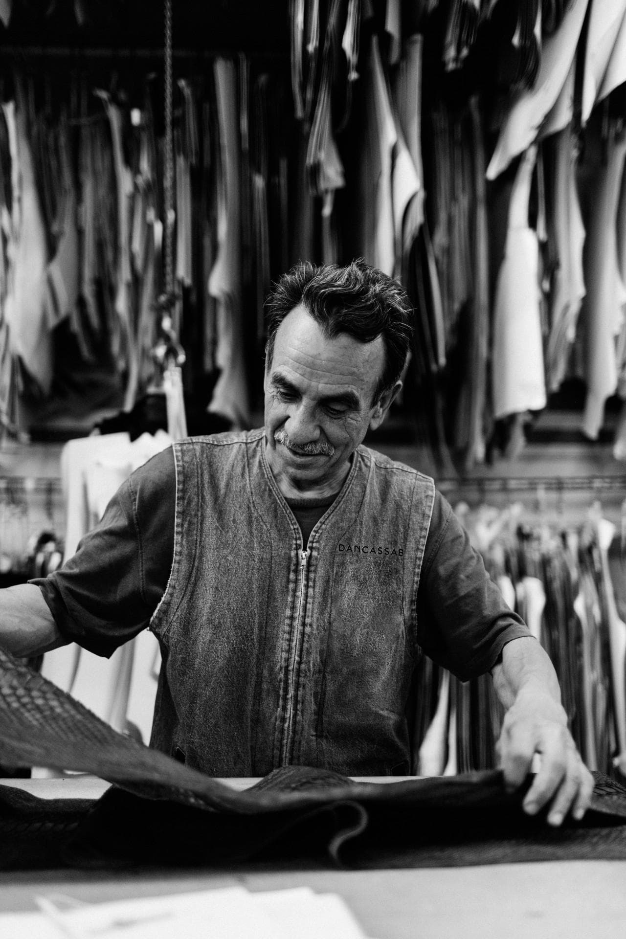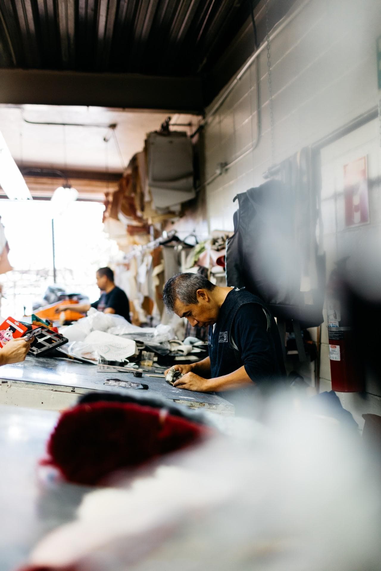 Craftsmen in Cassab's studio.Though she’s since expanded into other categories, the foundation of the brand lies in outerwear. Cassab draws a parallel between jackets and accessories. “If you're going out tonight with a silk dress, you're going to be able to wear the jacket, and tomorrow morning with your jeans and tank-top, the jacket is going to dress you up.” You can wear it over and over and over again, as you would a purse or a necklace. Not to mention, there’s a certain swagger tied into the history of leather jackets. “You would be so surprised when people come into our shop and leave with a jacket on,” Cassab says of their Mexico City outpost, “they're another person completely.”