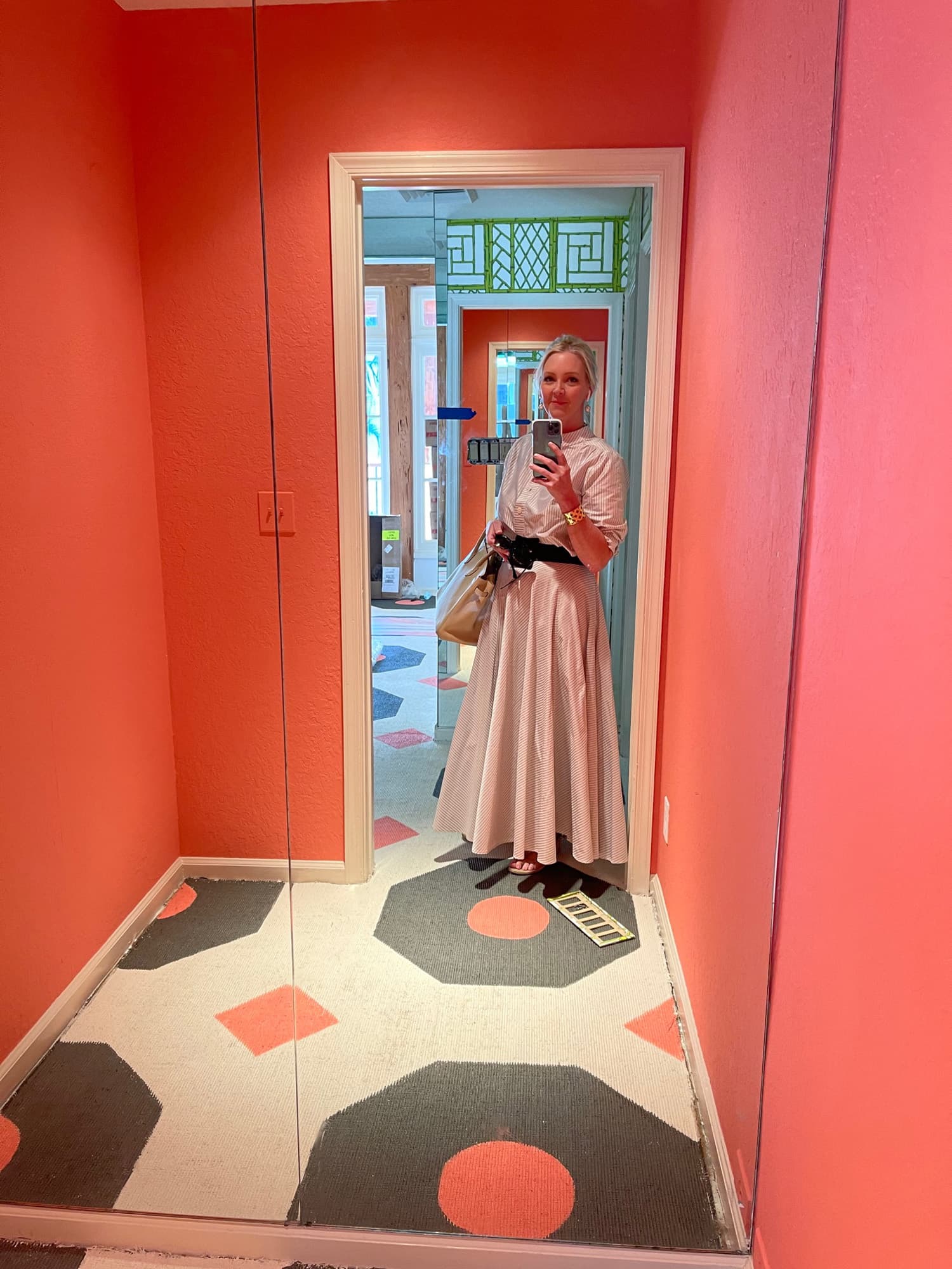 is the most talented decorative painter I’ve ever worked with. She did that same hexagon pattern on a floor in my Kips Bay room here in Palm Beach a couple of years ago, so I knew she had the template. I love painting a floor, whether it’s a hardwood floor, whether it’s carpet, even if it’s plain concrete because it instantly updates it and it gives it such a wonderful feeling.”