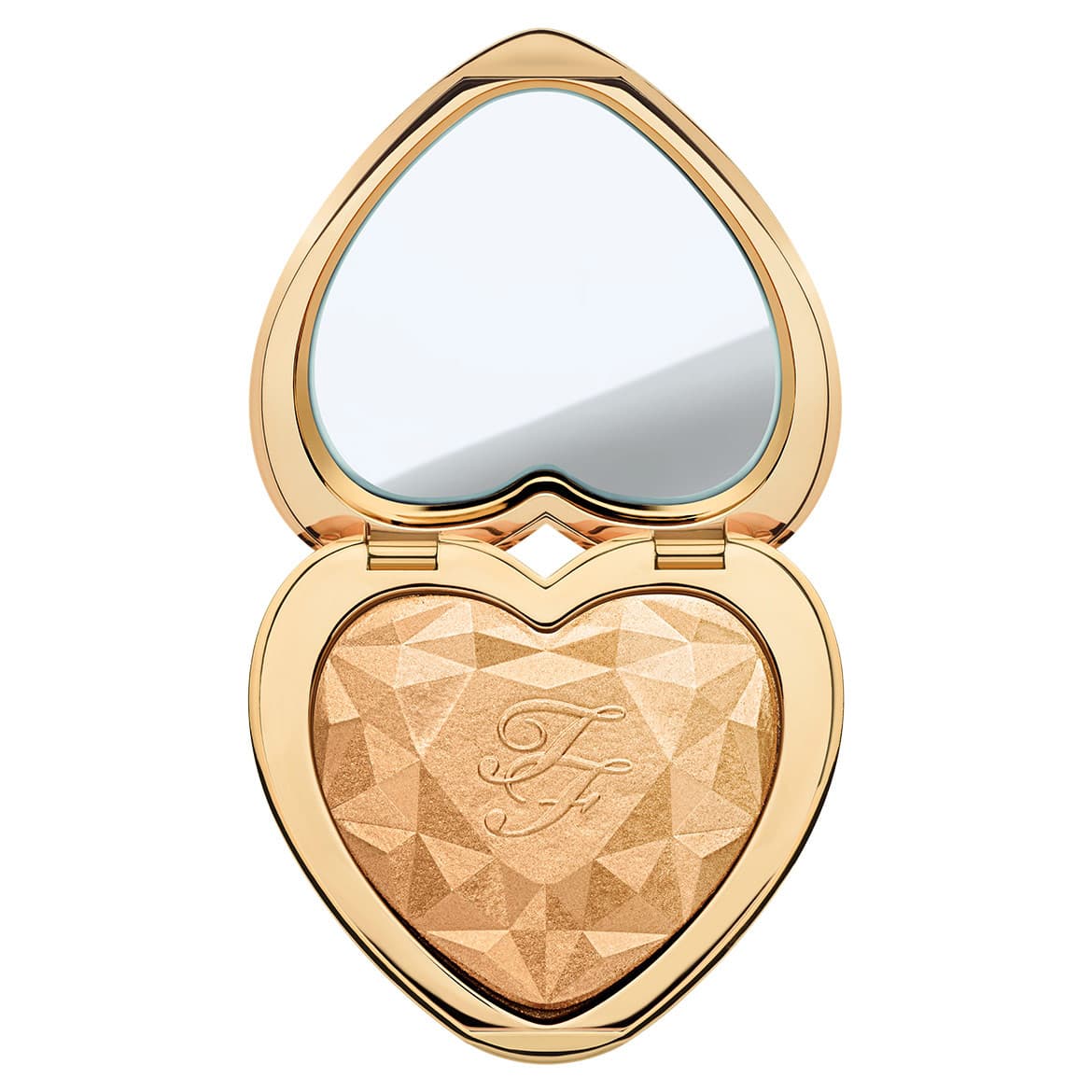 “A highlighter—I really love Too Faced powder highlighter—a great mascara—L’Oréal Paris Voluminous Carbon Black Mascara is a great one—and a nice even skin tone, so La Mer foundation.”