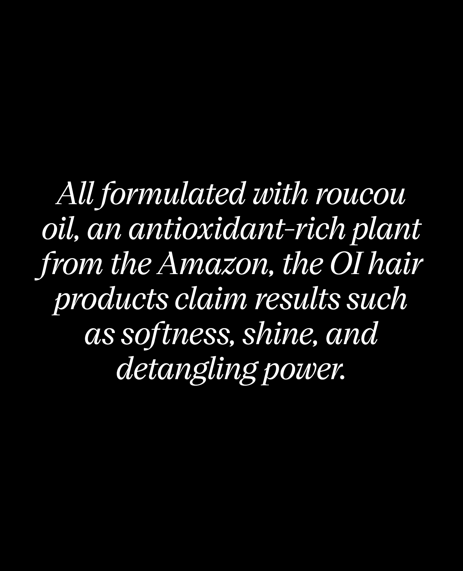 Sounds complex, but how to use the product is pretty straight-forward: After shampooing, squeeze out excess water, and apply the OI Liquid Luster directly to hair lengths and ends. Massage to fully saturate before rinsing thoroughly and proceeding with conditioner. The results? Shiny, silky, soft hair.